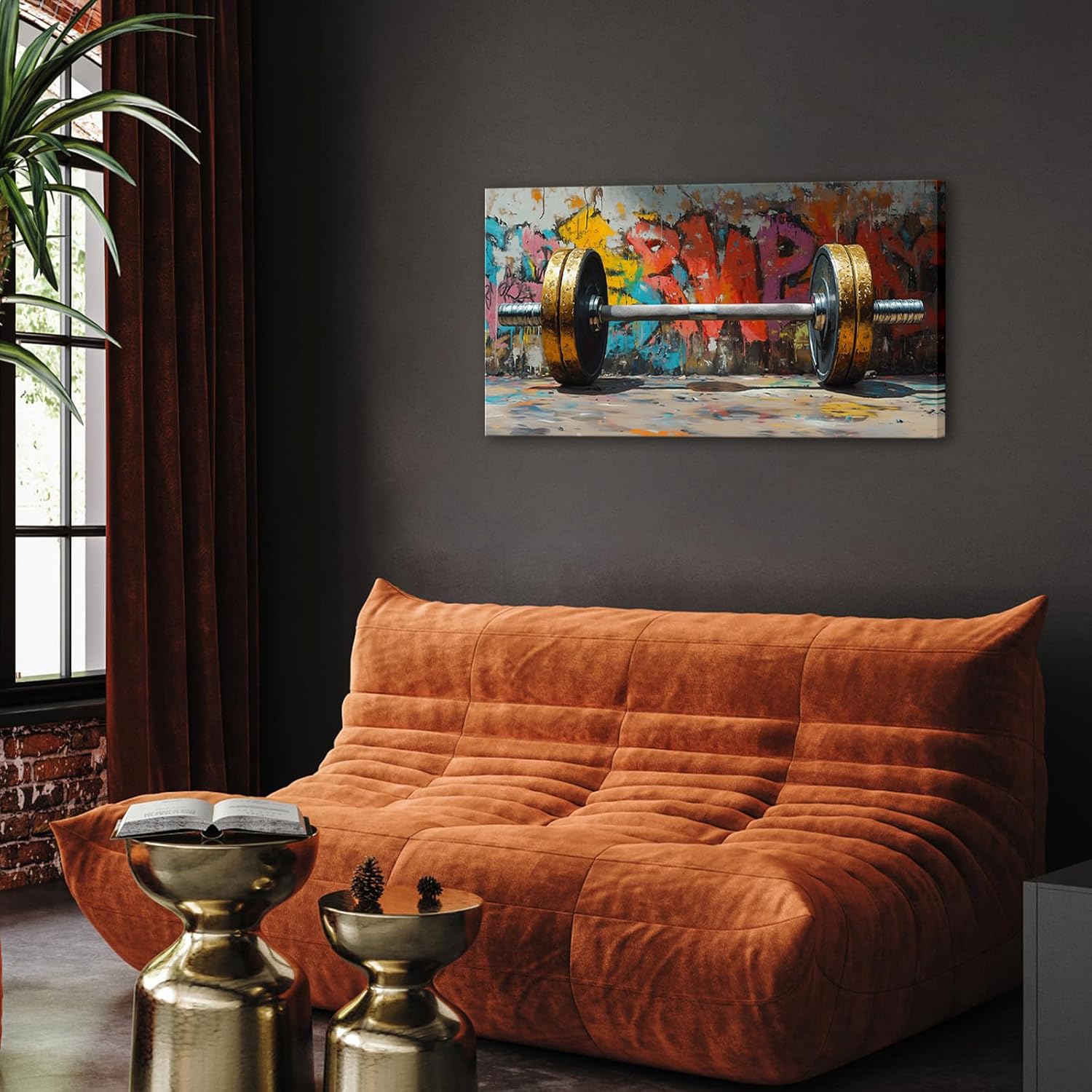 VANSEEING Graffiti Gym Wall Art Canvas Prints Barbell Weightlifting Fitness Picture Sport Motivational Artwork Oil Painting Wall decor for Workout Bedroom Fitness Boys Room 40x20 inch