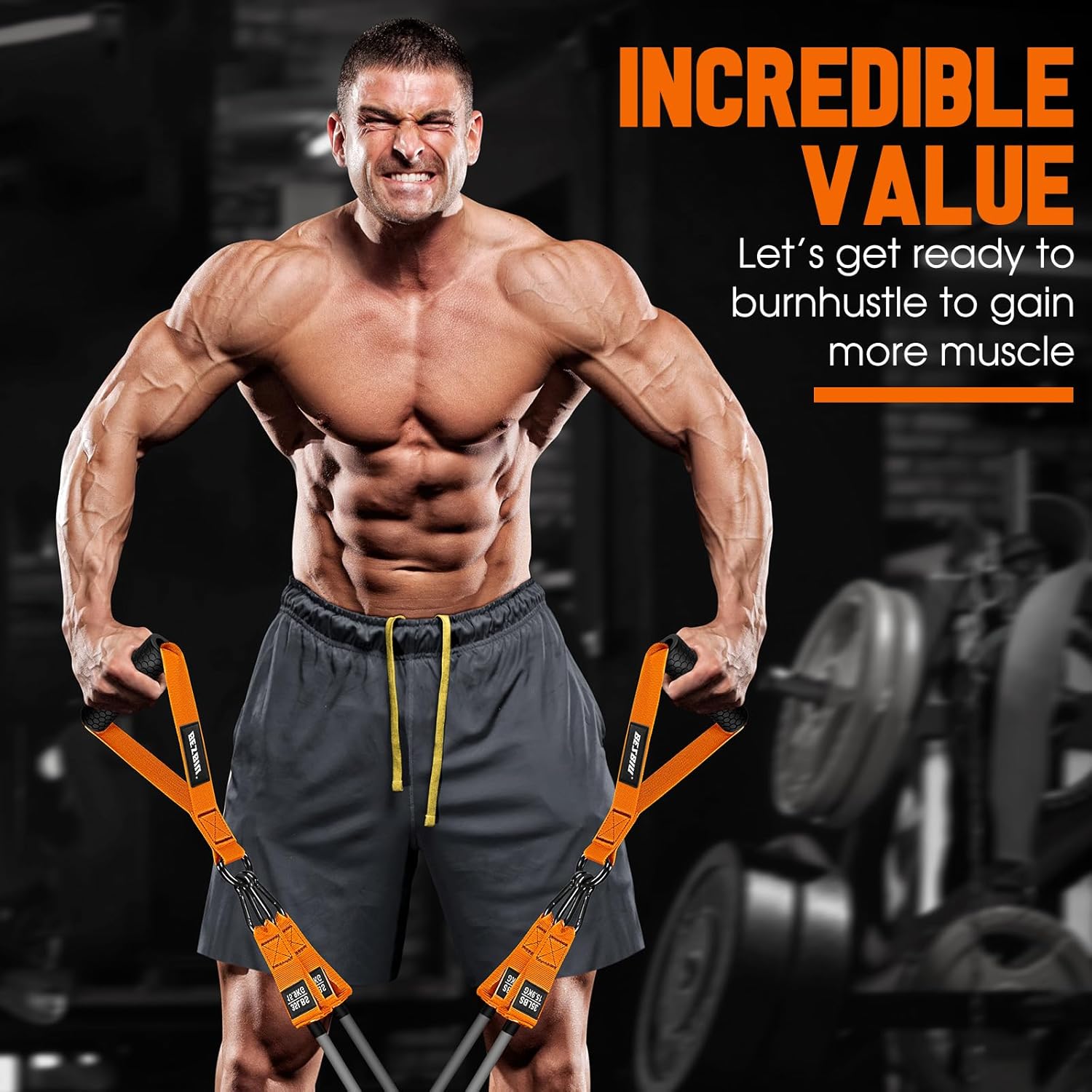 - SUPERIOR QUALITY EXERCISE BANDS: For maximum longevity and safety during use, the 47" long resistance bands are made of high-grade natural latex with high-density nylon webbing and sturdy heavy metal climbing carabiners that won't break or deform. Each tube fitness band is double-layered and carefully constructed to provide maximum resistance. making it more elastic and durable, safe, and reliable. Which can withstand intense daily exercise sessions and ensure your training goes perfectly.