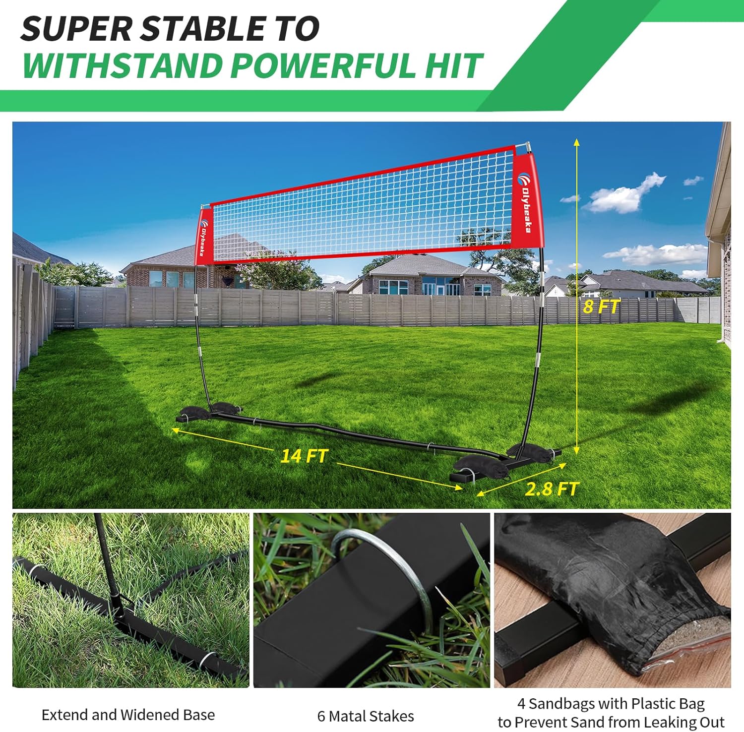 12ft/14ft Portable Volleyball Training Practice Net Set 5 Heights Adjustable for Indoor Outdoor with Tetoron Net, Freestanding Base, PU Volleyball, Carry Bag, Sandbags - Instant Set Up