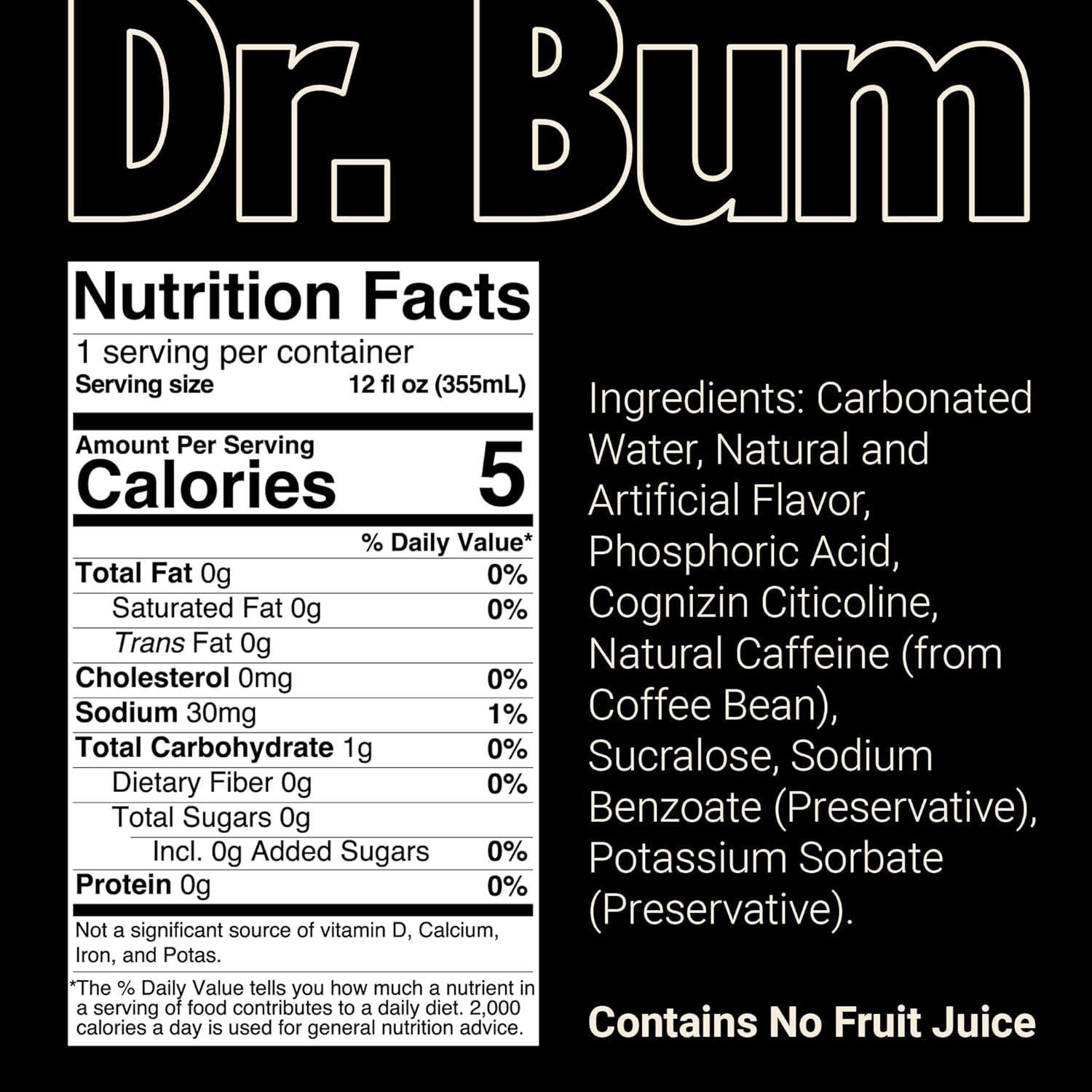 - Dr. Bum Bum Energy Drink: Crack open a can of Bum Energy and channel your untapped potential. Made with stimulating natural caffeine and brain-boosting Cognizin, a dynamic duo that will deliver clean energy and sharpened focus. 12-pack of 12-oz cans.