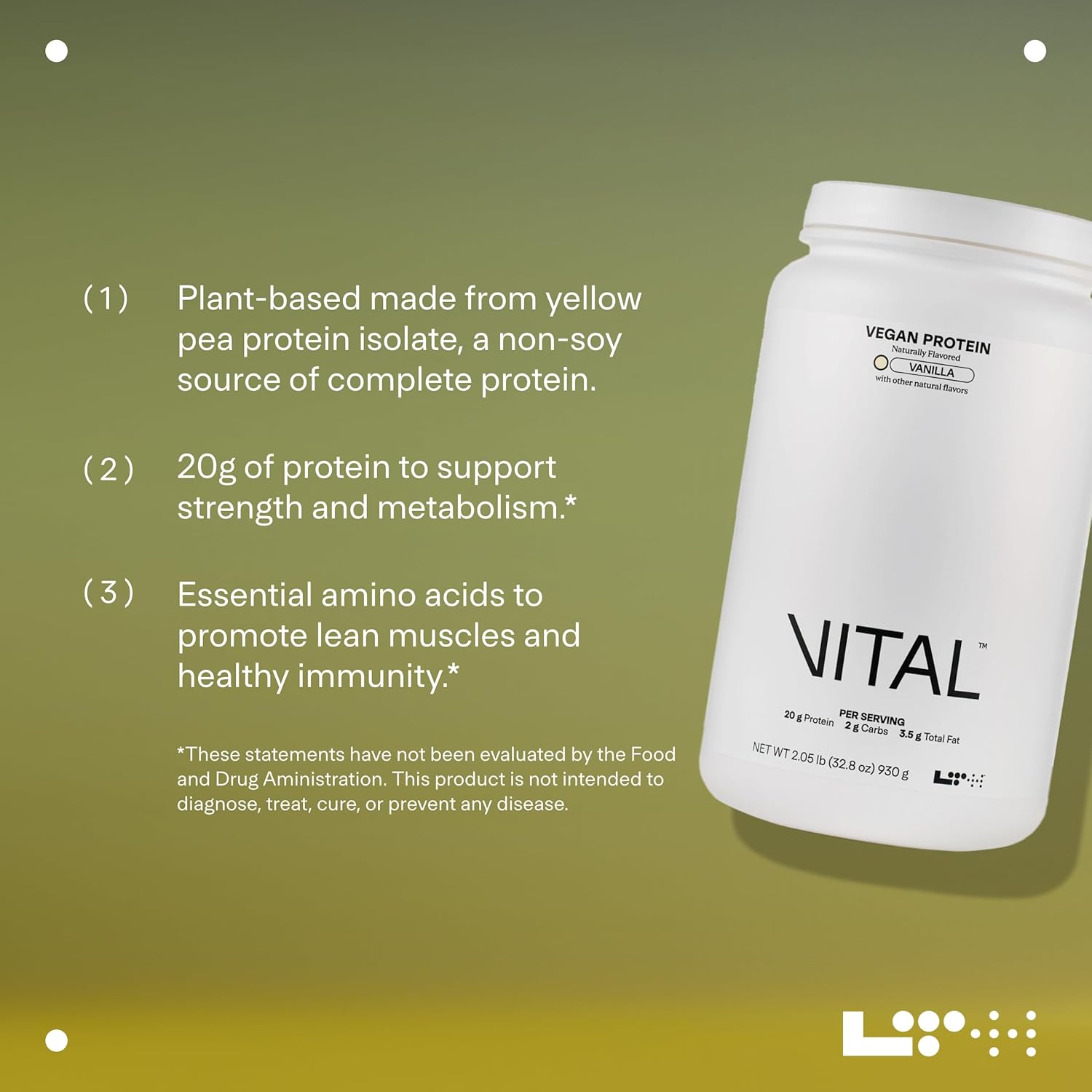 - Why You'll Love It: LTH Vital Vegan Protein is a plant-based powder made from pure yellow pea protein isolate, offering a non-soy source of complete protein; it has a creamy, easy-to-mix and low-allergen formulation without chalkiness or grit
