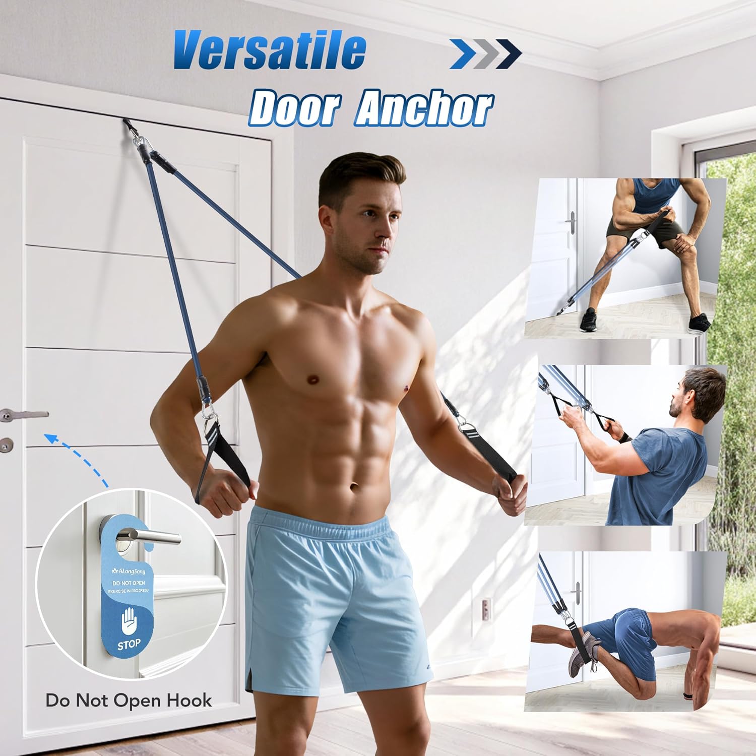 - 【Suitable for a variety of exercise methods and full body shaping】Resistance Bands work out your arms, legs, buttocks, and core with over 100 exercises (including guides). Use light resistance for flexibility training or maximum tension for muscle building. Pair with door anchors, ankle straps, or home gym equipment for endless versatility - perfect for shaping, barbell alternatives, or post-workout stretching.
