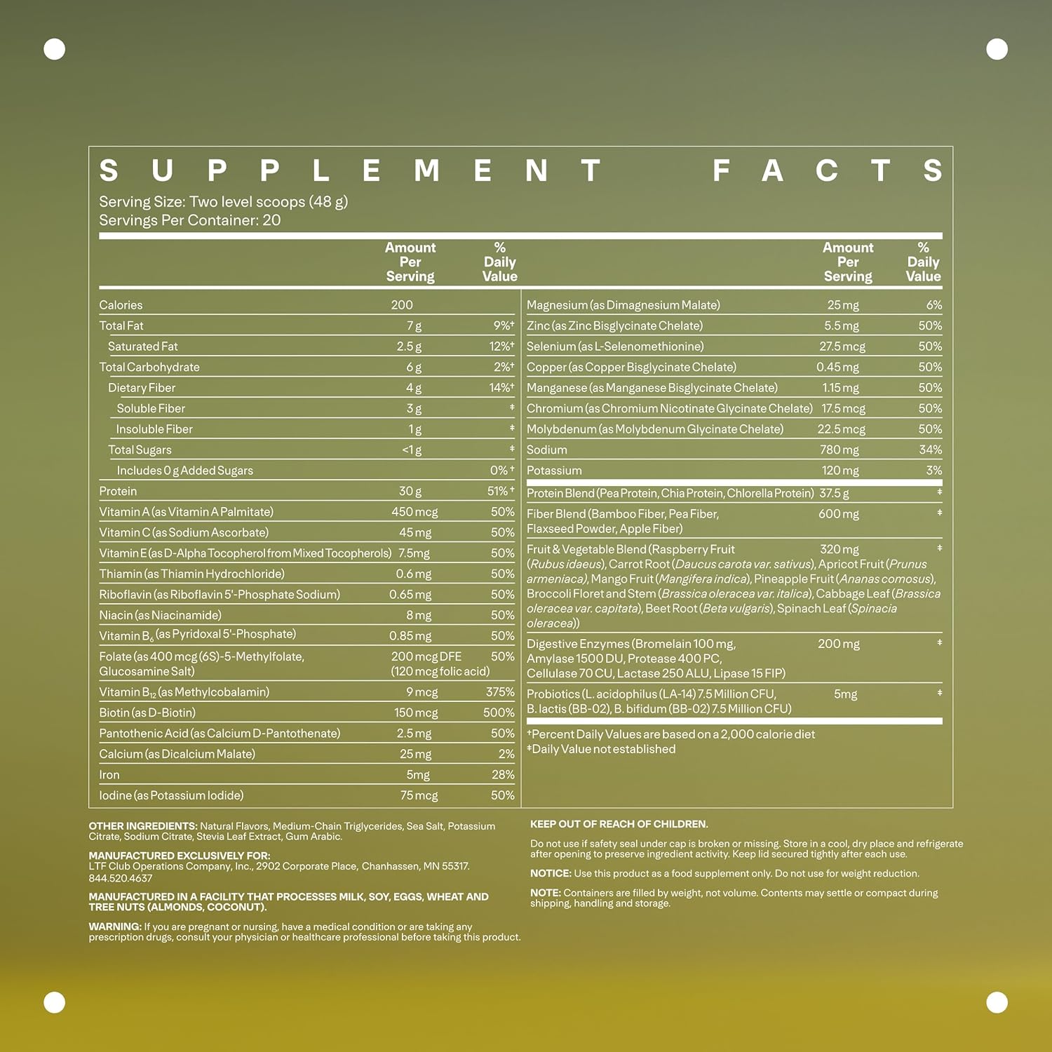 LTH Fuel Vegan & All-in-One - Trusted by Life Time Fitness Members - 30g Protein - Plant-Based Protein Meal Replacement - Vitamins, Minerals, Digestive Enzymes & Probiotics - Vanilla, 20 Servings