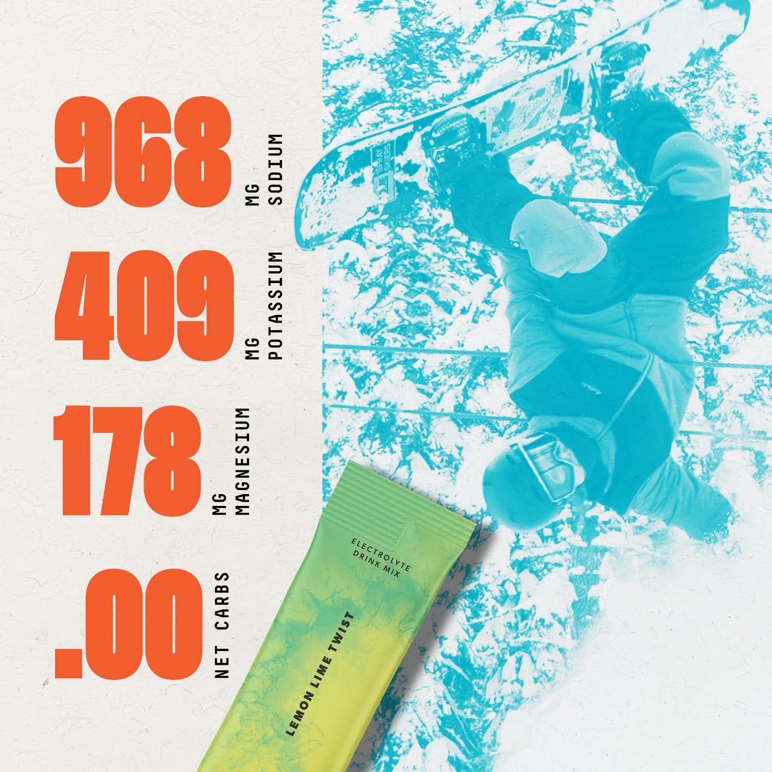 Keto Chow SALTT Electrolytes Powder Packets, Lemon Lime Twist (30 Hydration Packets) - Magnesium, Potassium, Sodium, Trace Minerals - Vegan, Sugar & Gluten Free - Travel Essentials - Made in USA