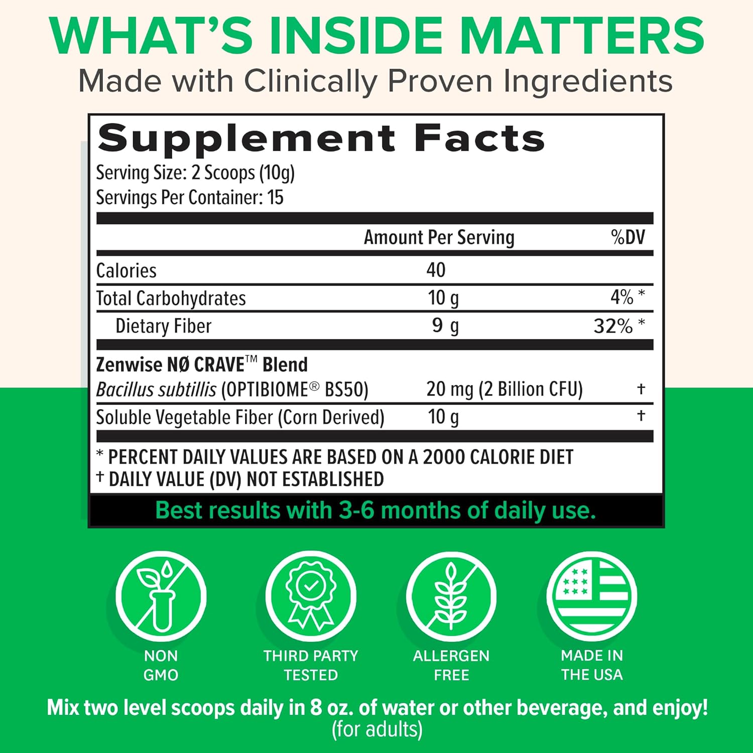 - Feel Fuller with Fiber: Our No Crave blend features clinically studied fiber that helps boost satiety and may as much as triple your body’s natural GLP-1 levels.* 10g of soluble fiber help you feel fuller longer without discomfort.