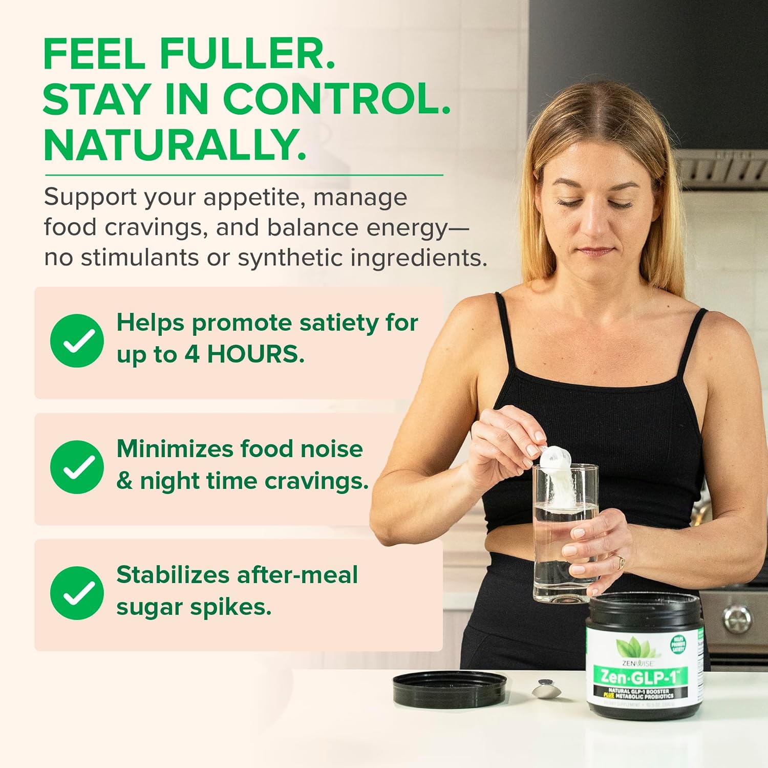 - Support Your Natural GLP-1 Levels: Feel fuller and in control with Zenwise ZenGLP-1 with Metabolic Probiotics. Our unique formula helps you manage hunger, pass on bloating, and support digestive health. Serving size: 2 scoops. 15 servings.
