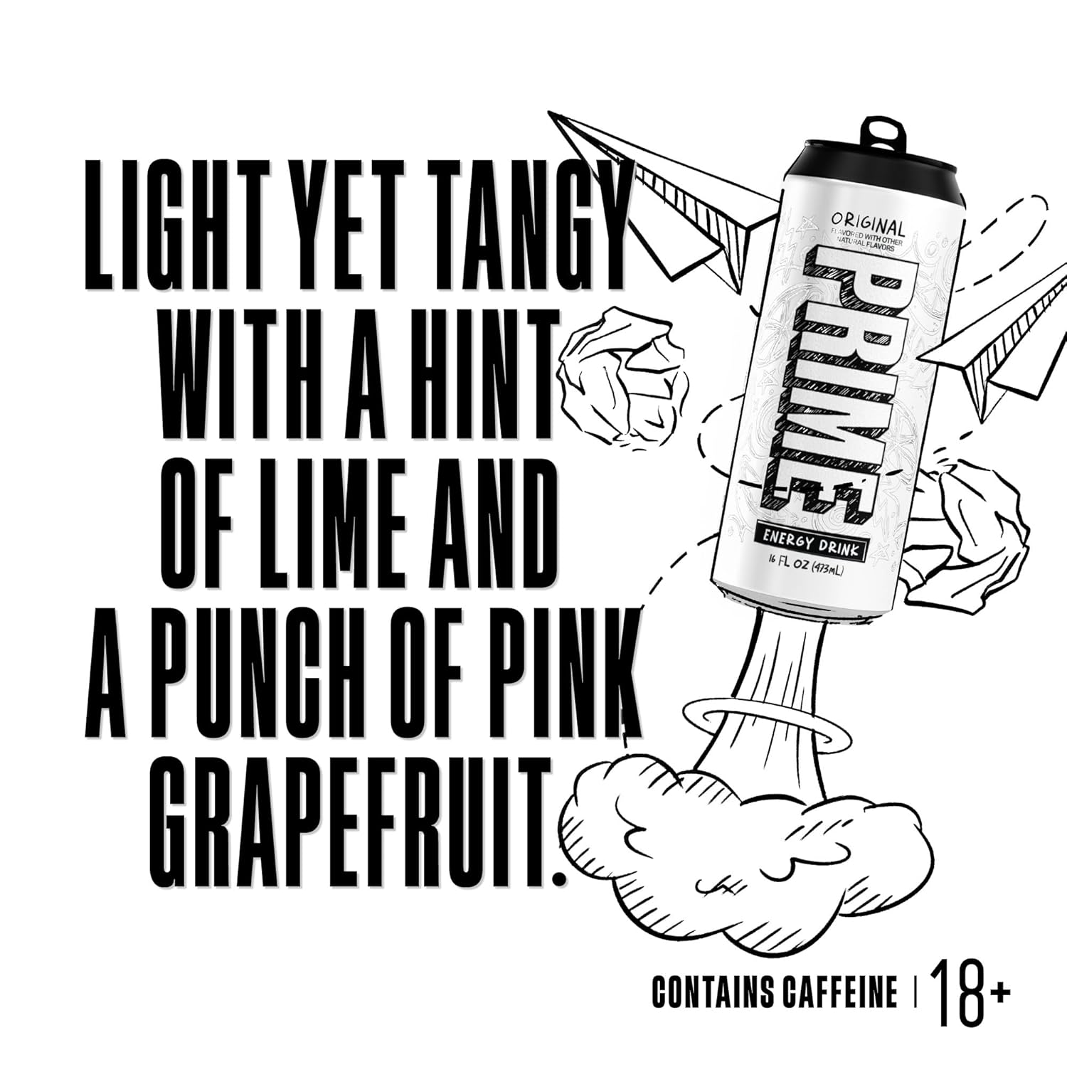 PRIME Energy ORIGINAL, Zero Sugar Energy Drink, 200mg Caffeine and 300mg of Electrolytes for Hydration, Vegan, Gluten Free,16 Fluid Ounce, 12 Pack
