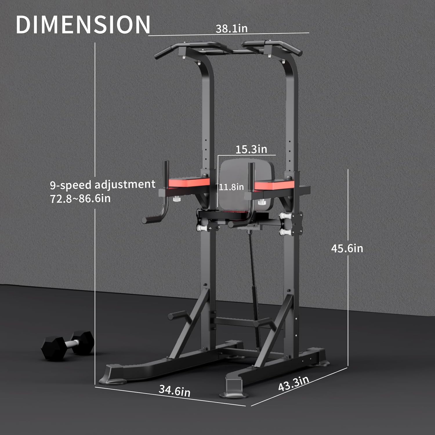 - 【 Multi Functional Adjustable】: The height of the power tower can be adjusted in 6 gears (68.5-83 inches), and there are 4 adjustable lengths for the hand position. During use, it can be adjusted to the appropriate gear and height, making you more comfortable during exercise and achieving the effect of muscle training.