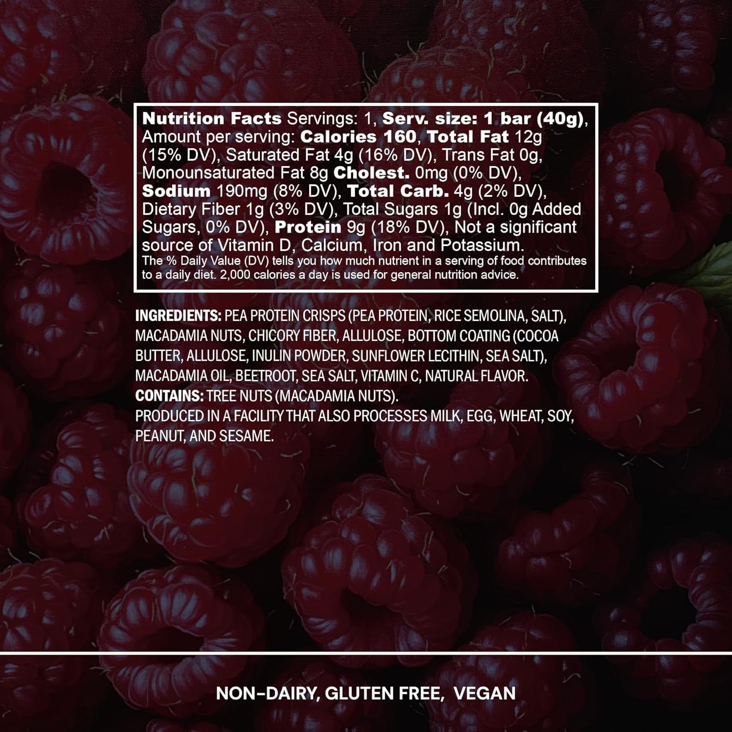 Blueprint Bryan Johnson Macadamia Nut Protein Bar - 9G Plant Protein - Healthy Fats - Supports Muscle Growth - Low Carb & Sugar - Natural Ingredients - Vegan Keto Snack (Raspberry - 12 Pack)