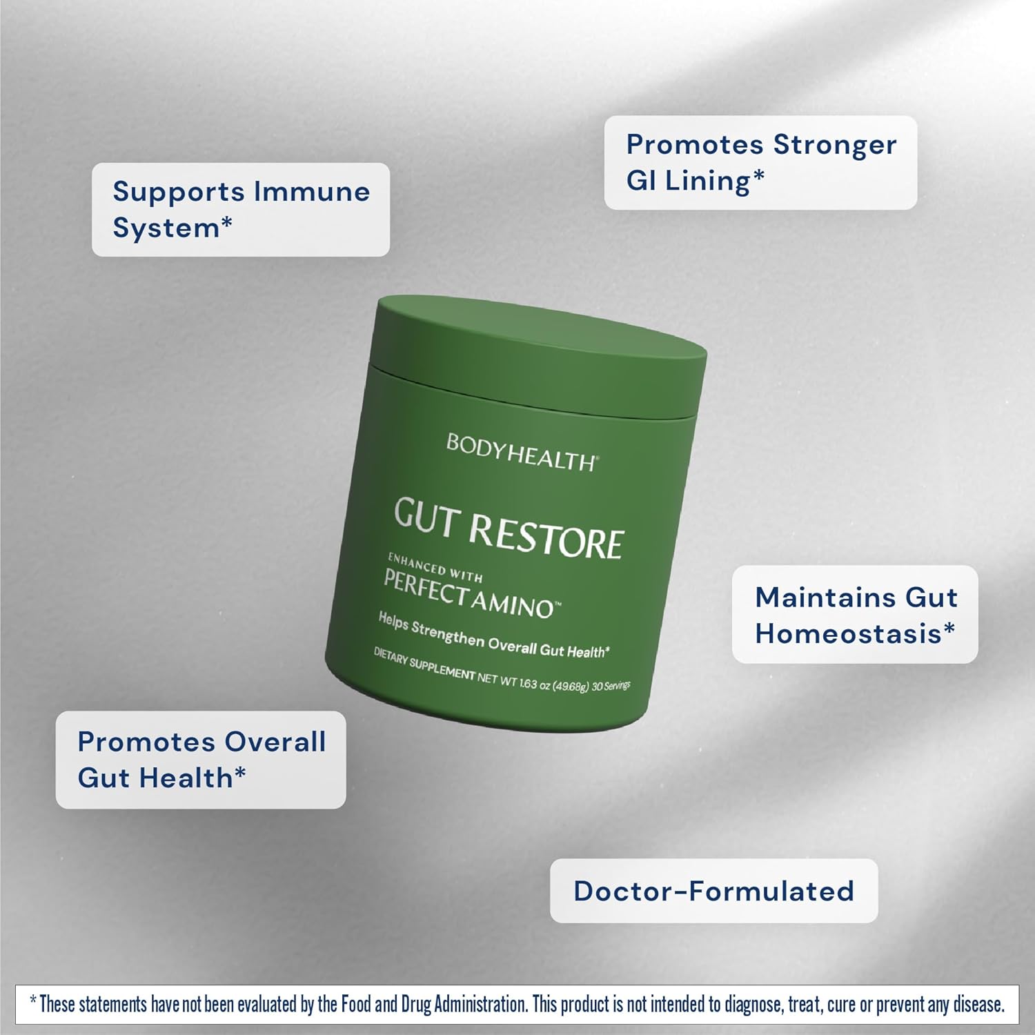 BodyHealth Gut Restore with PerfectAmino, ImmunoLin, and Humic Acid - Gut Health Supplement for Digestive and Immune Support - Unflavored - 30 Servings