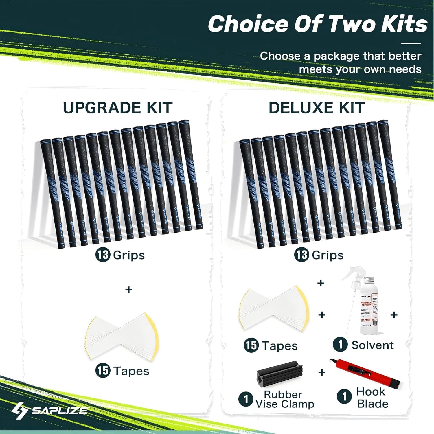 SAPLIZE Golf Grips Set of 13, Bundle with Tape or Full Regripping Kit, Jumbo / Mid / Standard / Undersize, Women / Men Anti-slip Rubber Golf Club Grips, CC01 Series