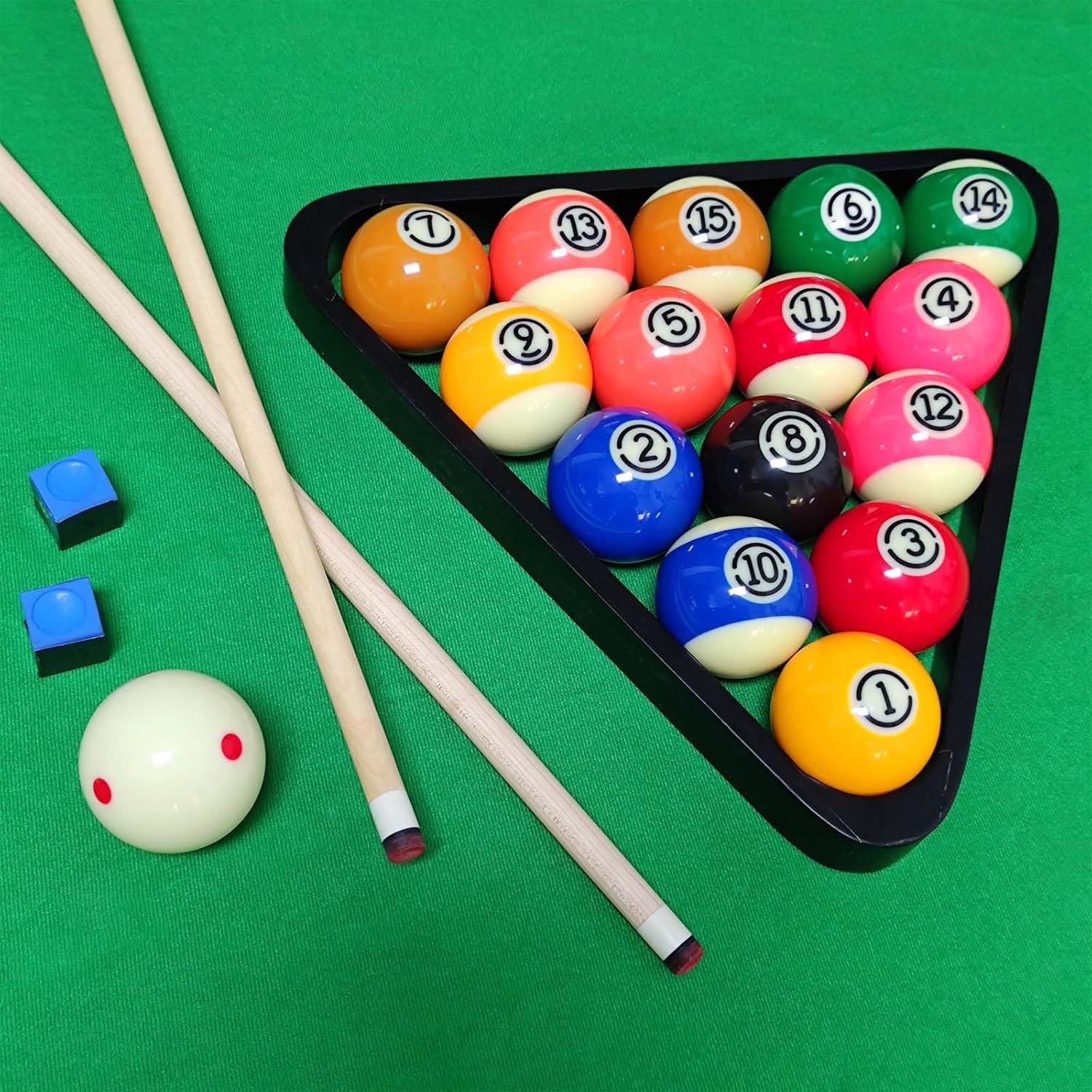 - Pool Balls Set: Made with high-quality polyester resin, these pool table balls feature durability, smooth rolling, and vibrant colors. They are designed to resist wear and tear, providing a lasting addition to your pool table accessories.