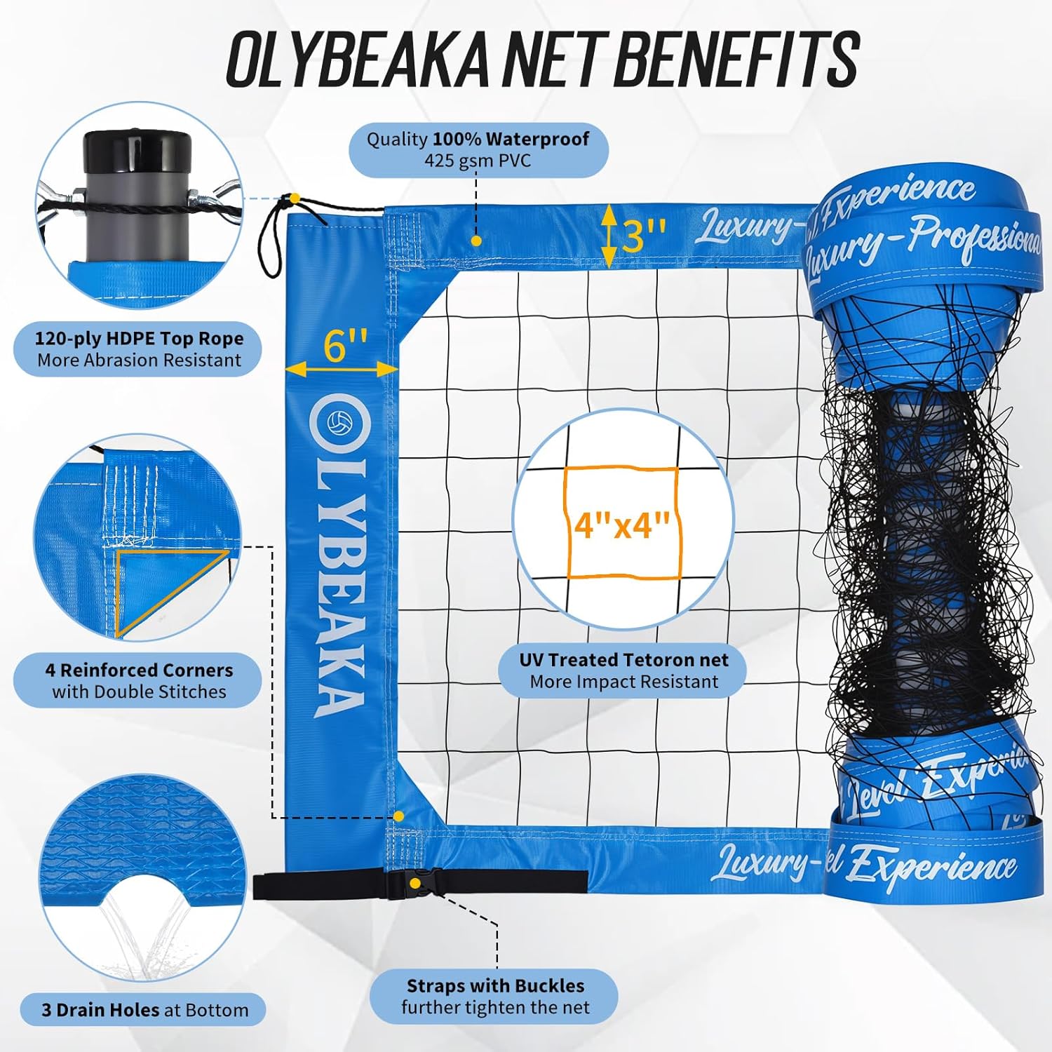 - ๐๐ฅ๐ญ๐ซ๐ - ๐๐ฎ๐ซ๐๐๐ฅ๐ ๐๐๐ญ ๐๐จ๐ง๐ฌ๐ญ๐ซ๐ฎ๐๐ญ๐ข๐จ๐ง ๐๐จ๐ซ ๐๐จ๐ง๐ ๐๐ฏ๐ข๐ญ๐ฒ: Crafted from 425 gsm PVC (0.42mm thick) and UV - treated Tetoron material, the net boasts 100% waterproof, tear - resistant, and anti - aging capabilities. Reinforced with 4 double - stitched corners, 3 drain holes, and a 120 - ply HDPE top rope, it endures intense impacts and harsh weather. Built to last over 3 years without deformation, itโs a long - term investment for endless volleyball fun.