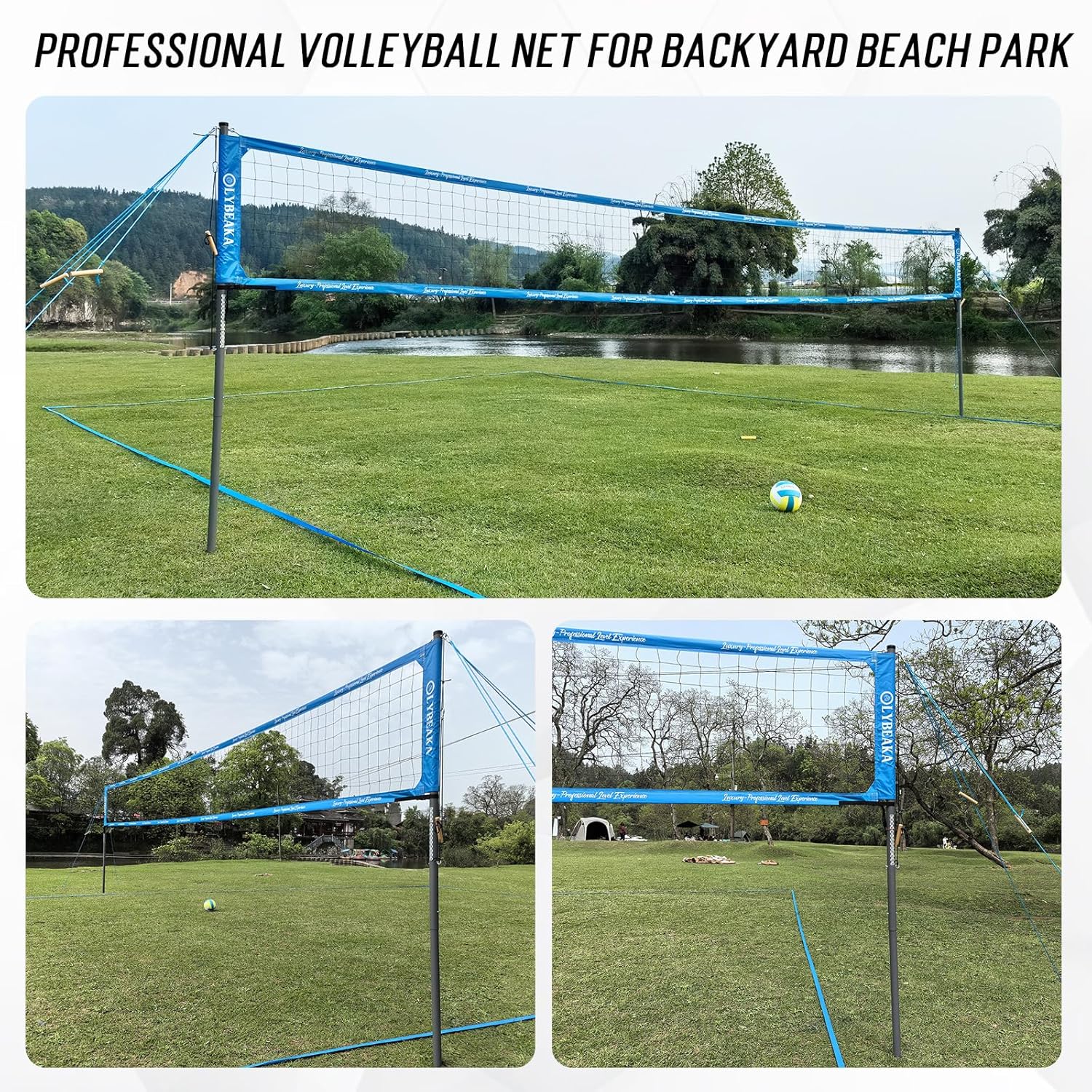 2025 Outdoor Professional Volleyball Net Set for Backyard Beach with Tetoron Net, Adjustable 2" Aluminum Poles, PU Volleyball,Carry Bag - Easy Setup & Anti-Sagg with 2 Tension Adjusters