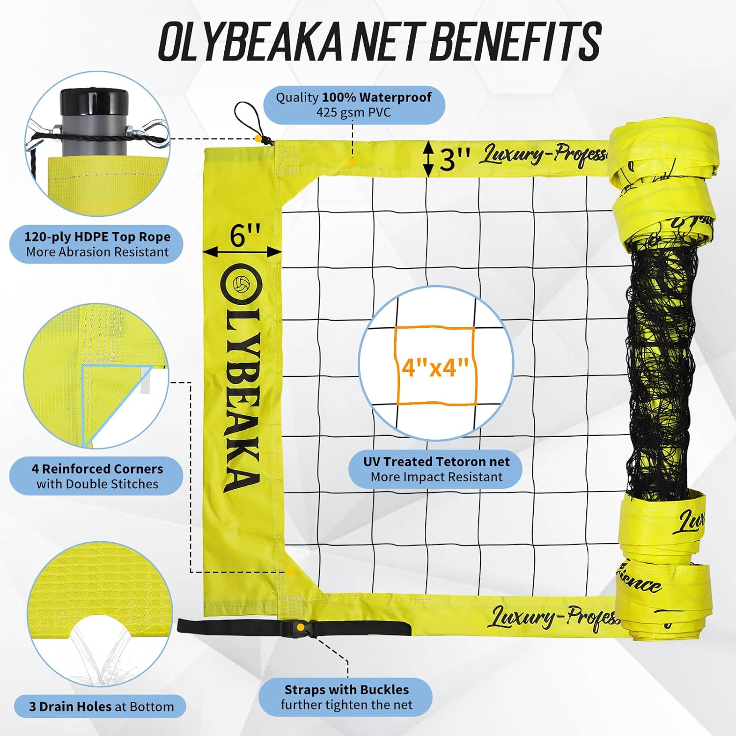 2025 Outdoor Professional Volleyball Net Set for Backyard Beach with Tetoron Net, Adjustable 2" Aluminum Poles, PU Volleyball,Carry Bag - Easy Setup & Anti-Sagg with 2 Tension Adjusters