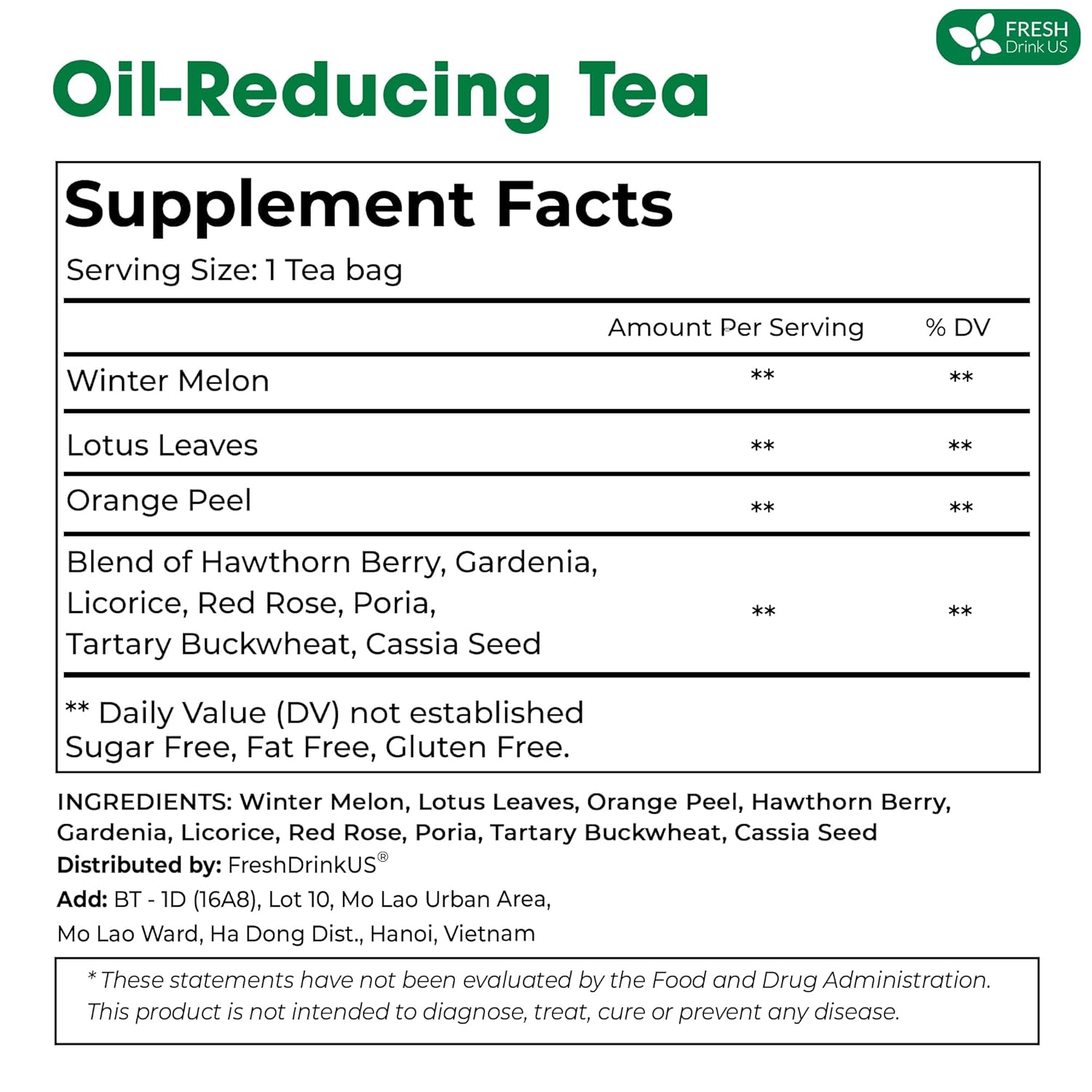 FRESHDRINKUS, 20 Packs of Oil Reducing Tea, Oil Cleansing for Liver, 10 Herbal Ingredients, Traditional Recipe Tea for Liver, 100% Natural, Easy Brewing, Steep Repeatedly
