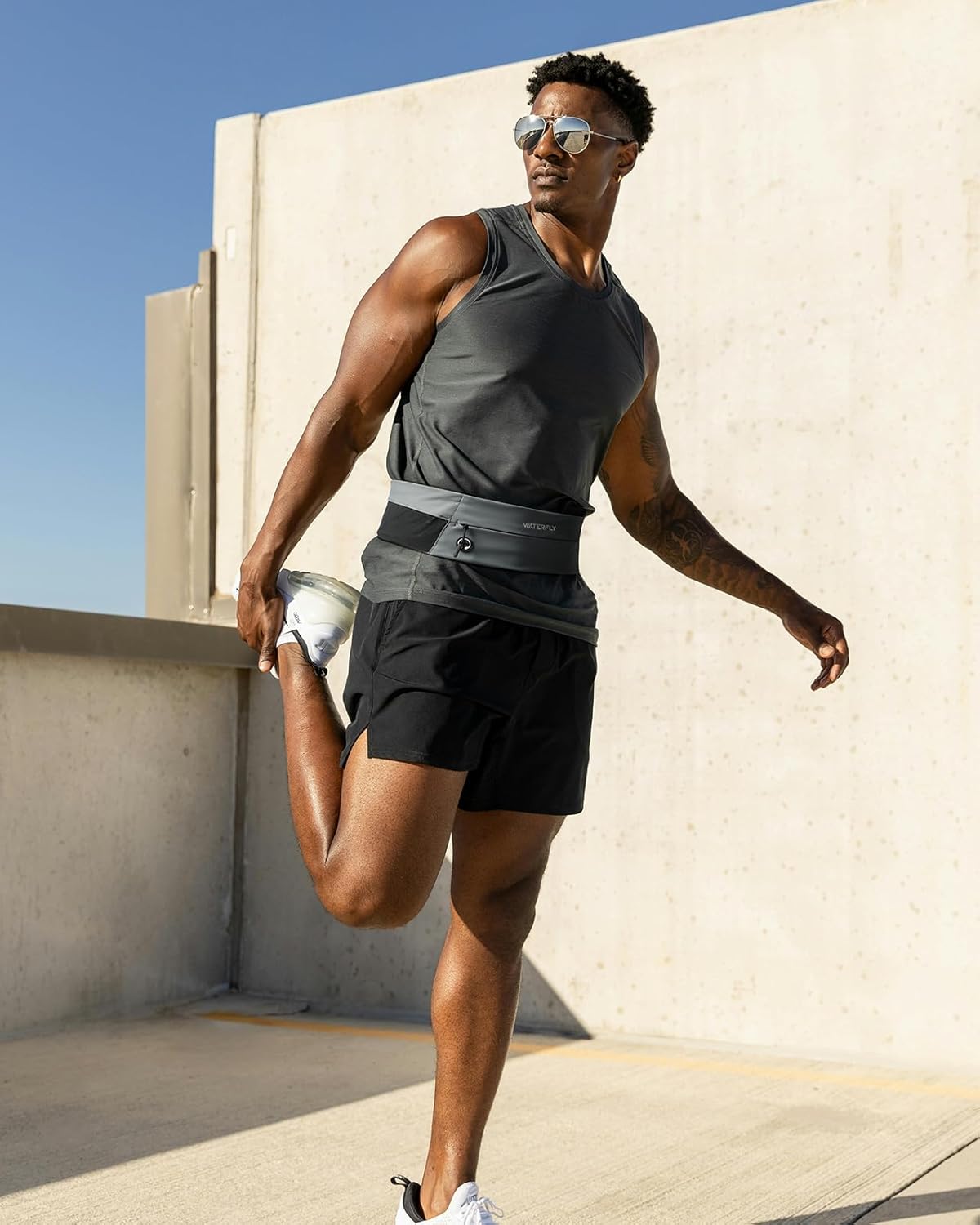 WATERFLY Running Belt Fanny Pack: Slim Waist Bag for Men Women, Workout Fitness Phone Holder for Exercise Marathon Jogging-Grey