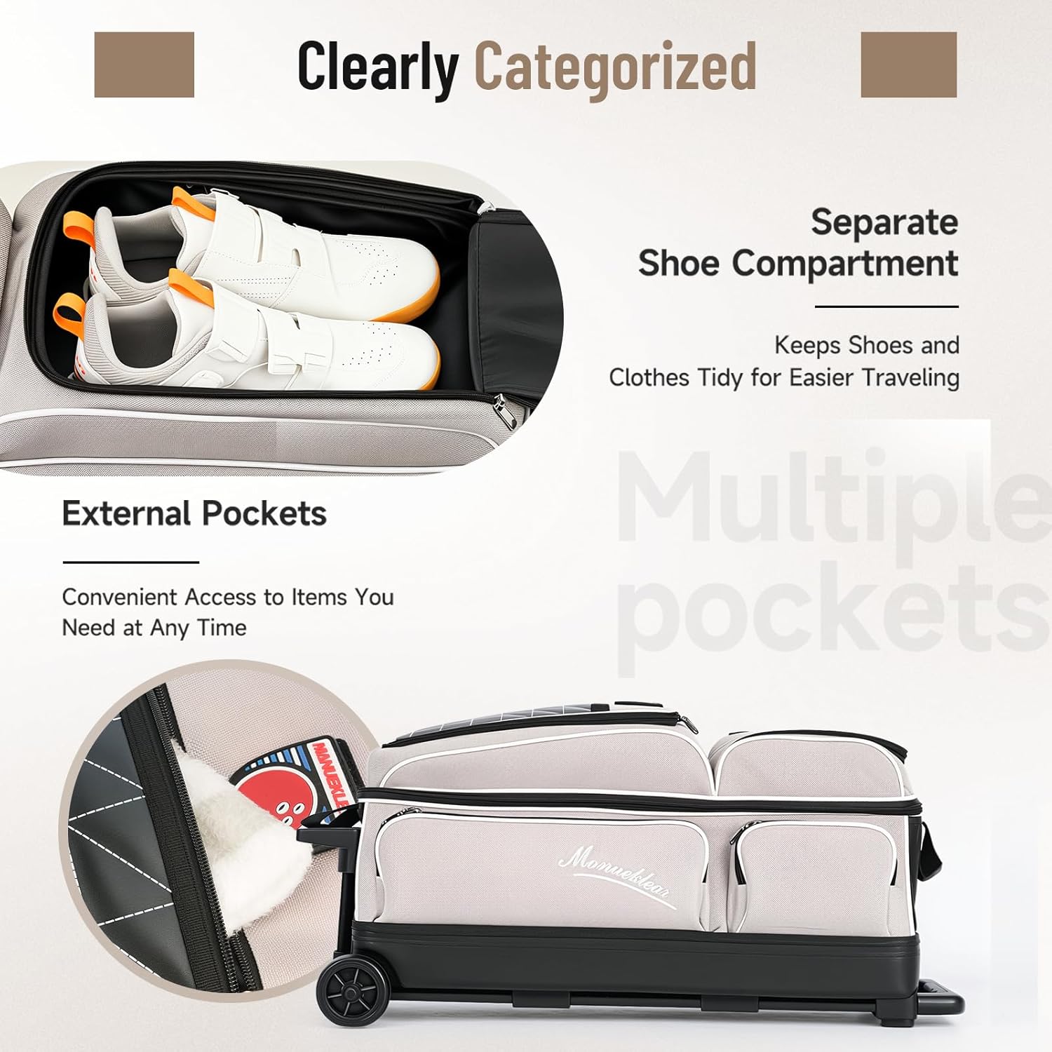 - ๐ค Smooth-Gliding Wheels--Our bowling bag features high-quality, silent wheels that provide seamless movement across all surfaces. Whether you're on the slick floors of an indoor facility or navigating rugged outdoor pathways, our wheels ensure effortless mobility. With these premium wheels, you can concentrate on your game without the distraction of struggling with your bagโmaking every journey to the lanes a pleasure.