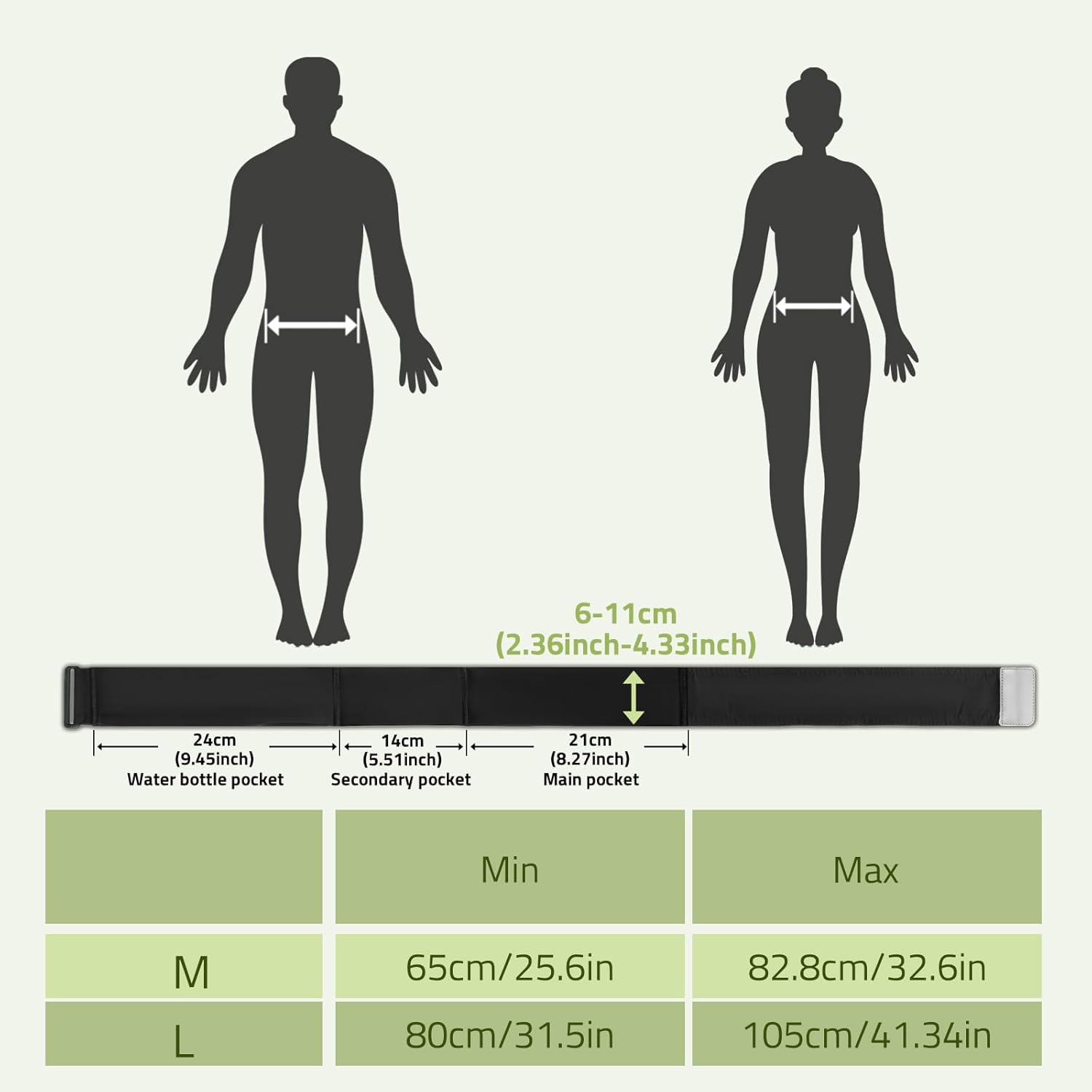 - 【Adjustable Fit & Extra Belt Extension】: M Size(24''~33'') & L Size (31.5''~45''),Both size of this running belt also comes with a PLUS size adaptor for more curvy people. No worries about to buying a size that's not long enought.