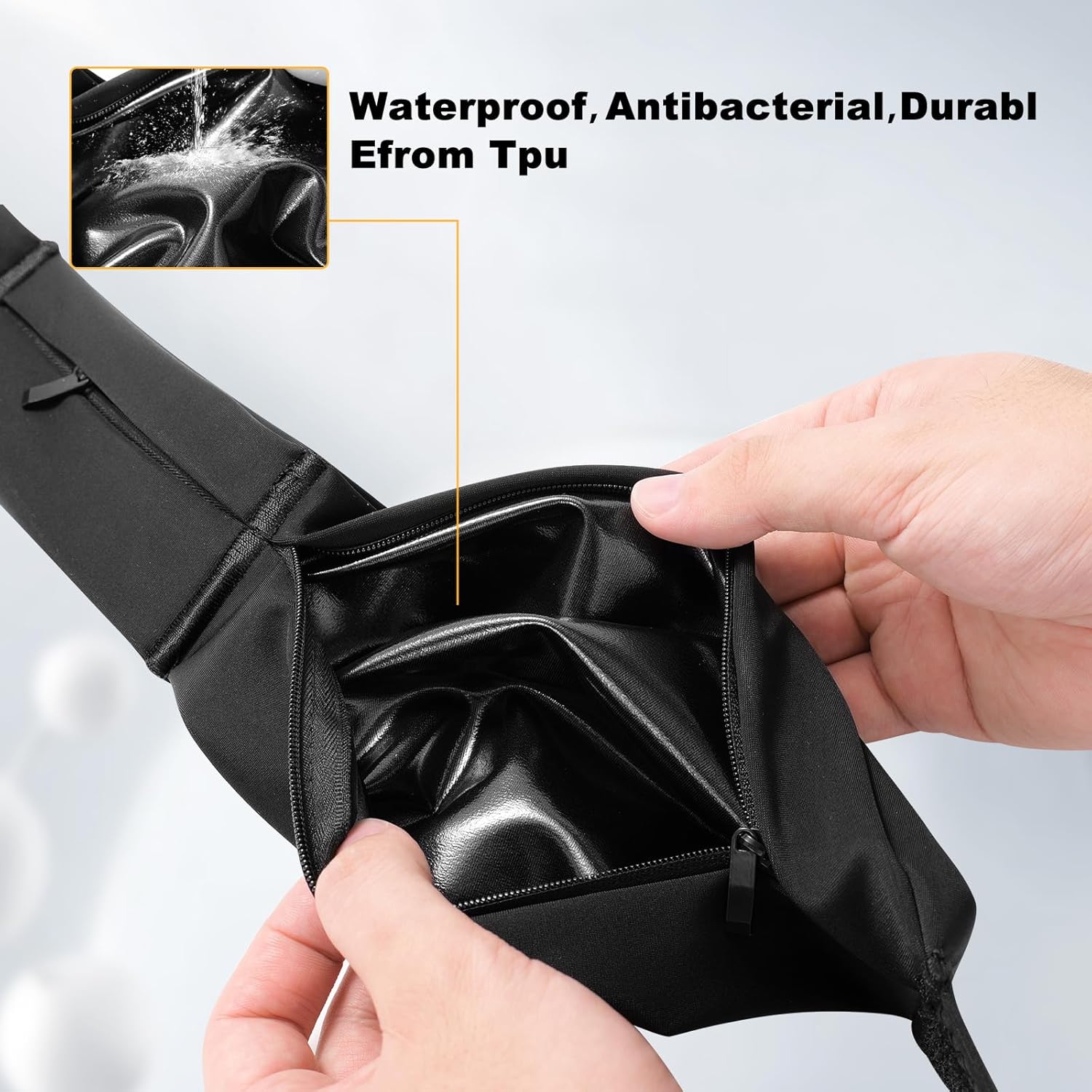 - 【Quick Drying Outer Coated & Water Proof Inside Pocket】: Running belt for men and women made with high-quality, breathable materials with water proof inside pocket, This running fanny pack belt ensures comfort by keeping you dry and reducing friction during your workout. It also can protect your phone and cards car keys cash from getting wet while running.