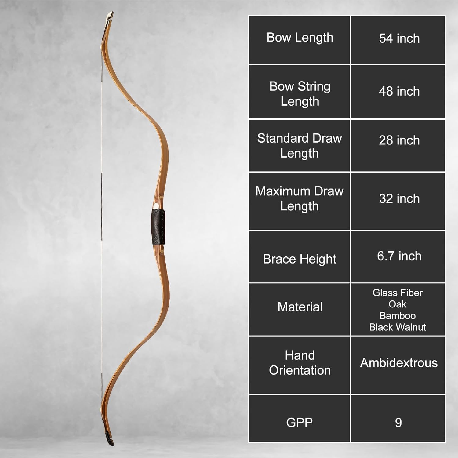 - [Premium Quality Materials] The bow handle and tip are made of maple wood. The limb is compressed by the bamboo and glass fiber layer, which is strong and durable. The weight of the bow body is 0.77lbs.