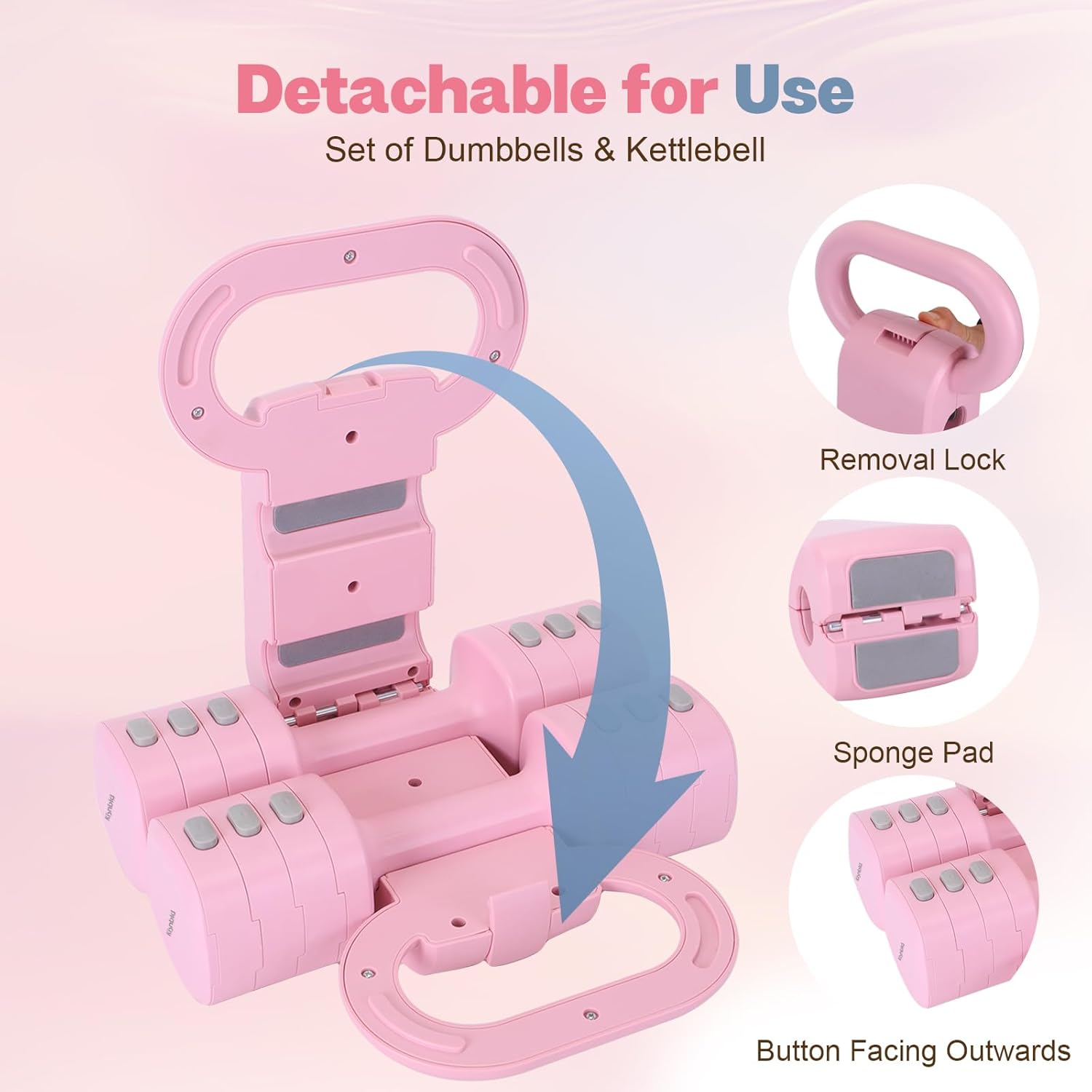 - 𝐔𝐧𝐢𝐪𝐮𝐞 𝐂𝐨𝐧𝐯𝐞𝐫𝐭𝐢𝐛𝐥𝐞 𝐃𝐞𝐬𝐢𝐠𝐧 - Seamlessly transforms between a full-size kettlebell for full-body workout and two adjustable dumbbells for precision strength training. The innovative locking mechanism ensures secure conversion in seconds with no loose parts.