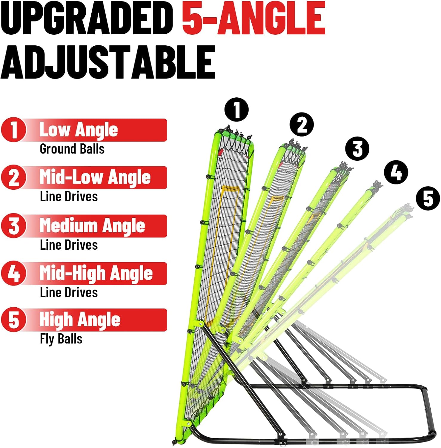- ✨ 5-Angle Precision Training: Master grounders, line drives, and fly balls with 5 adjustable angles—2 more than standard rebounders—for realistic baseball, softball, and volleyball drills. Perfect for honing fielding reflexes, pitching accuracy, and spike power.
