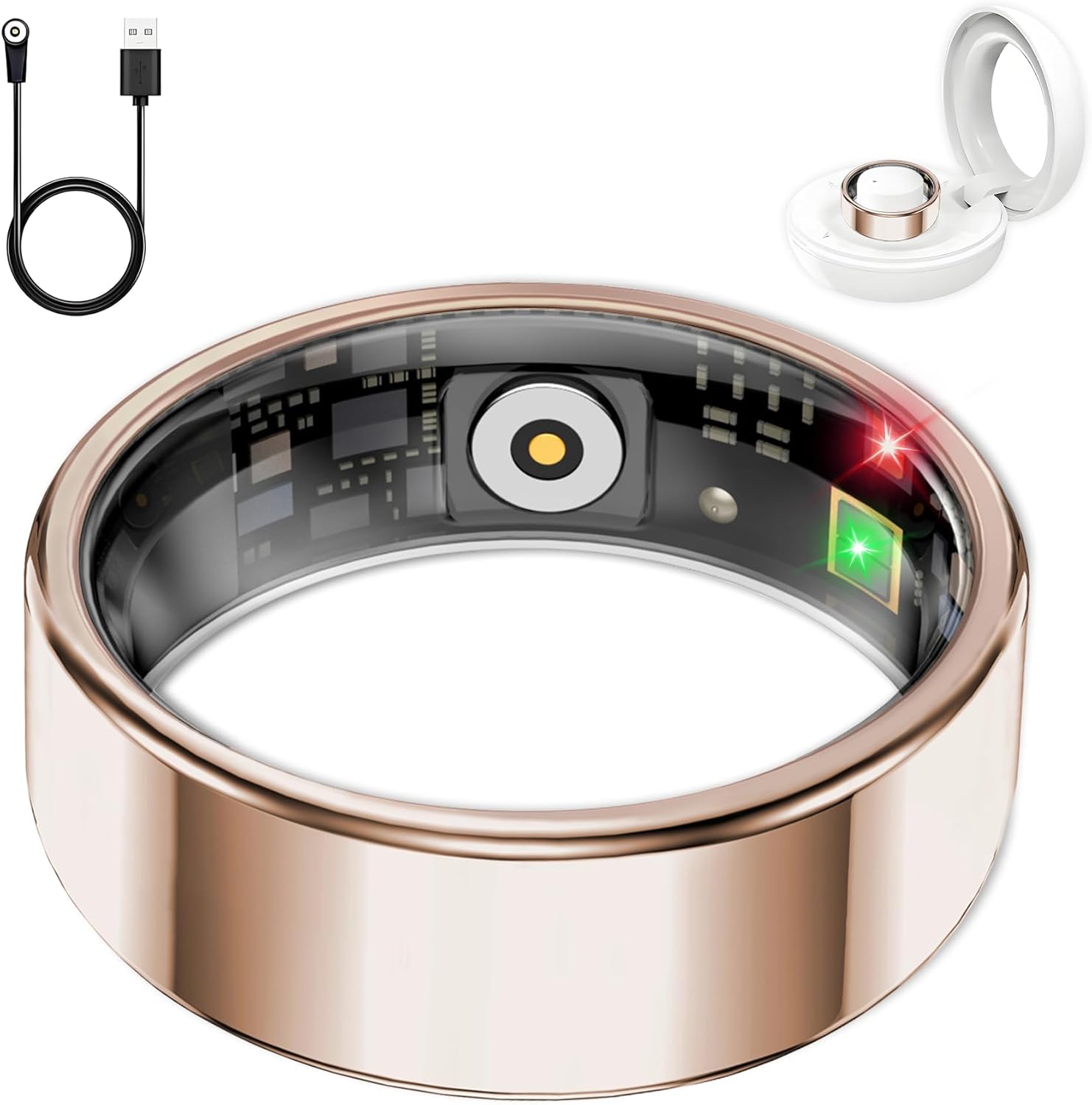 Smart Ring for Women Men, Sleep Tracker Ring, Waterproof Fitness Tracker Health Rings with Heart Rate Monitoring,Blood Oxygen,Stress Distance Calories Steps Tracking,No Subscription Fee(Rose Gold,#12)