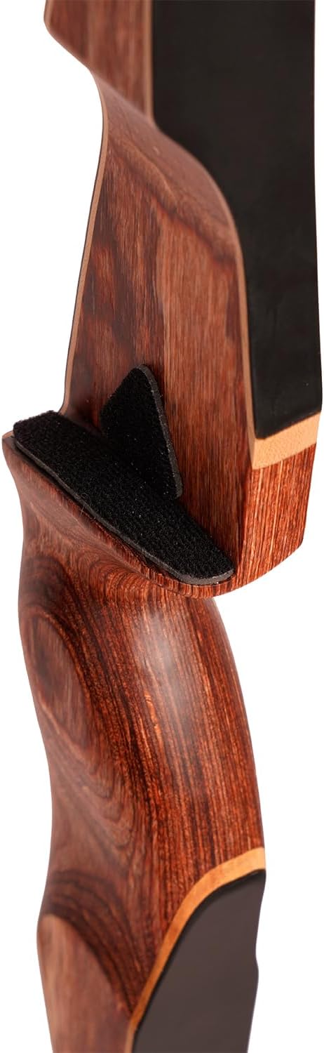 - 【Materials】 Laminated wood riser with solid wood from America, lightweight and durable. Limbs are made of multi-layers of maple wood core and fiberglass which provide stable, strong and durable shooting experience. Combined the different solid wood into the handle as well as crafted grip for soft and smooth shooting.