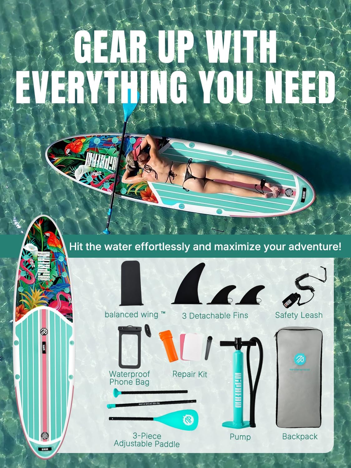 - 【Dive into Water Directly】- Niphean inflatable paddle board comes with all the necessary sup accessories to get started right away, including 1 adjustable paddle, 3 detachable fins, 1 safety leash, 1 pump, 1 sup backpack, 1 waterproof phone bag, 1 repair kit, and 3 product instructions. There are 11 D-rings on Niphean blow up paddle boards, which add functionality such as installing a kayak seat for fishing, securing a cooler or connecting with other inflatable sup through these D rings.