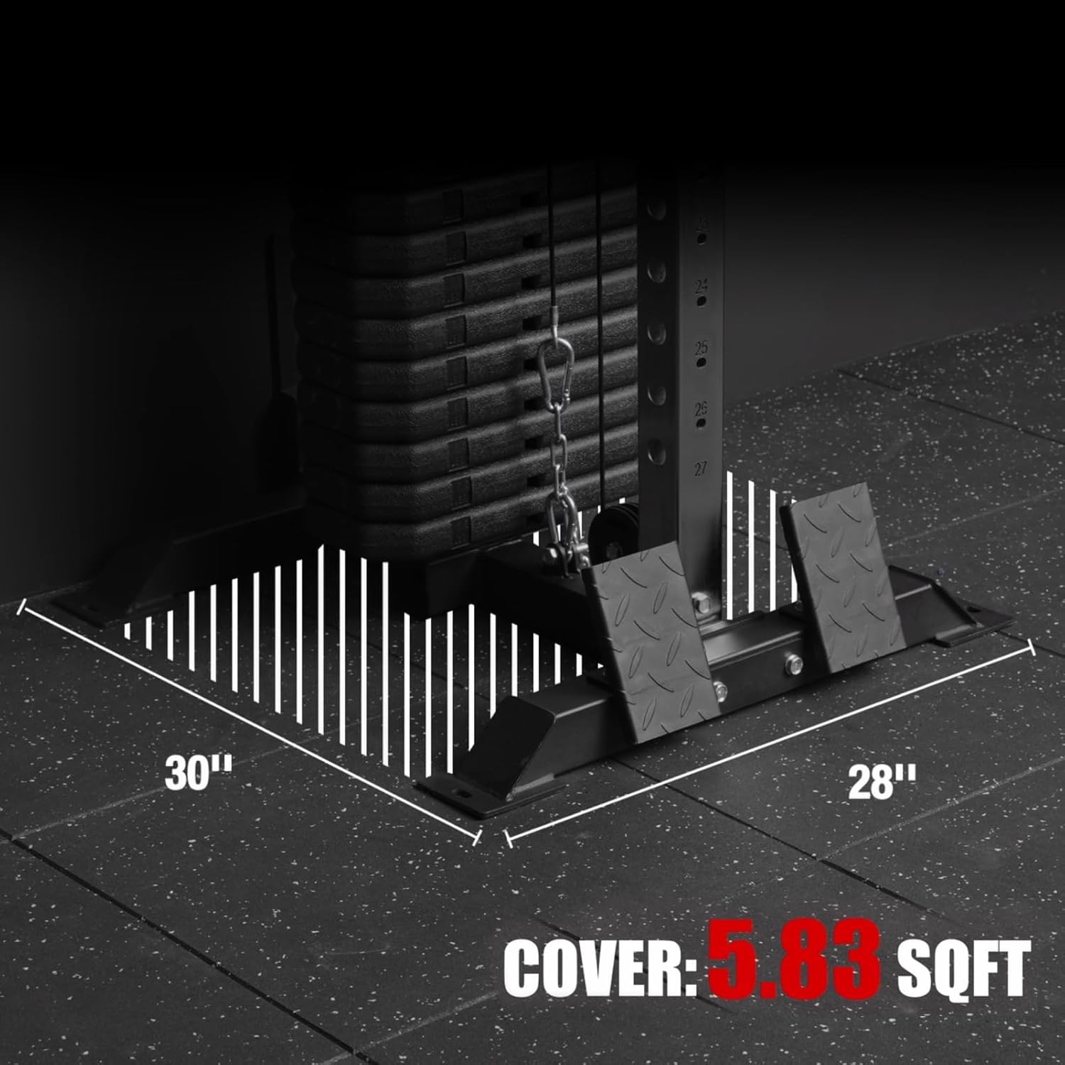 - Selectorized Weight Stack: High-end cable tower is equipped weight stack pulley system as opposed to a plate-loaded system. 1:1&2:1 ratio and 195lb weight. Lets you very easily perform drop sets or supersets with virtually no rest between sets. It also means less moving around and handling weights between your sets. It makes you more efficient so you can focus more on actual training instead of preparing to train.