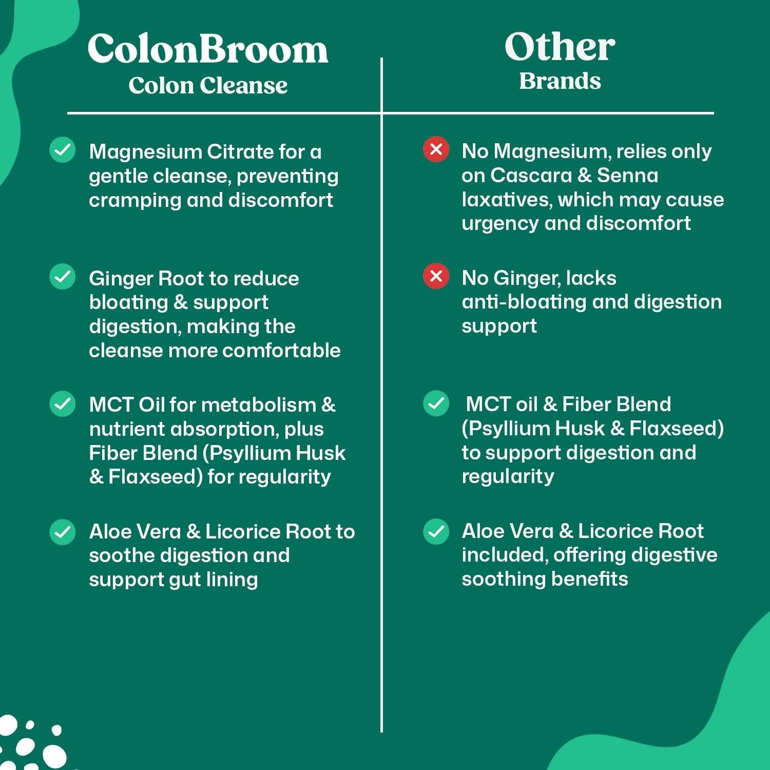 - Gut Health & Weight Management in One - Unlike others, our ColonBroom 15 day cleanse formula supports digestion, fat metabolism, and regularity with probiotics - helping you manage weight while feeling great.