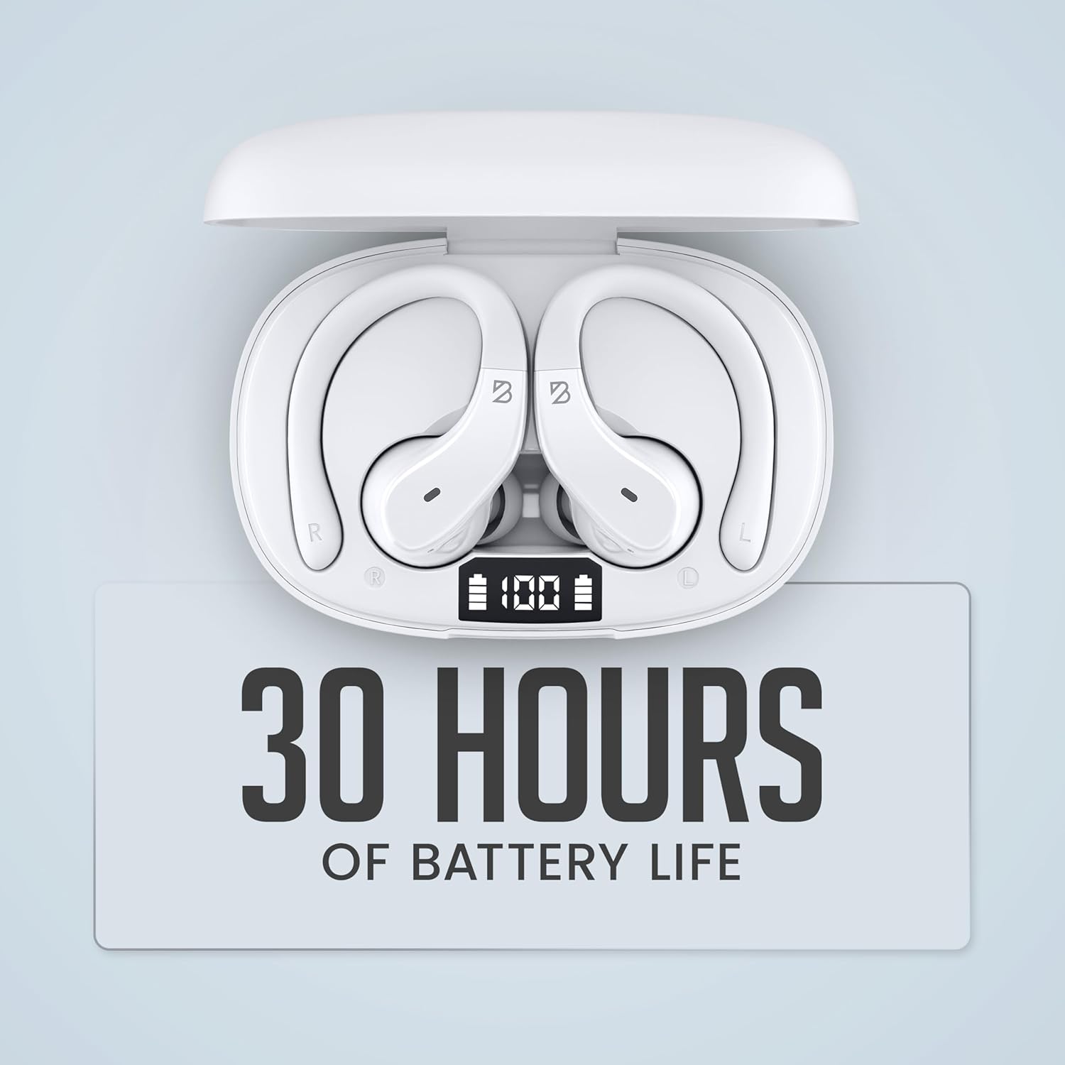 - 30 Hour Battery Life + USB-C Charging: Each of the over ear Blue tooth ear buds can play music for 6 hours, and the charging case keep the wireless earbuds running with 24 hours of music; Charge your sports bluetooth headphones for running once and use them for weeks of workouts; The only gym headphones men and women can use for years on end