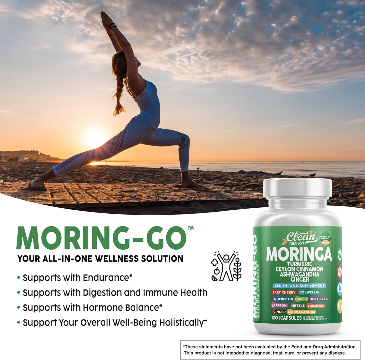 Moringa Powder Capsules + Turmeric Moringa Leaf Ceylon Cinnamon Ashwagandha Ginger Tart Cherry Boswellia Quercetin Garlic Holy Basil Saffron Nettle Black Pepper Moring-Go Supplement By Clean Nutra (2)