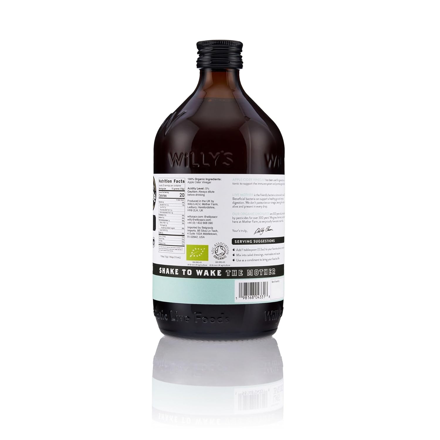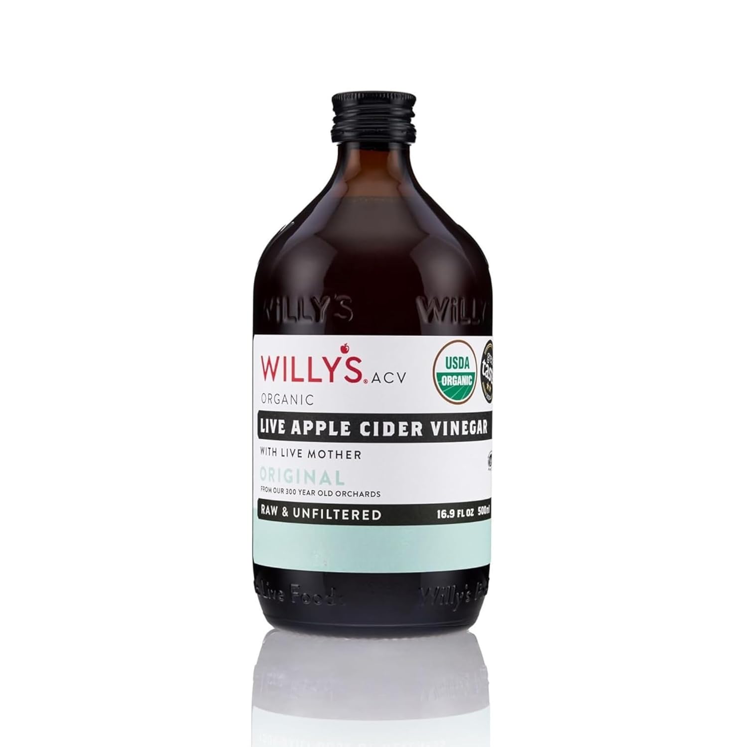 Willy's Organic ACV Apple Cider Vinegar with Mother - Probiotocs for Detox and Gut Health. 16.9oz Glass Bottle