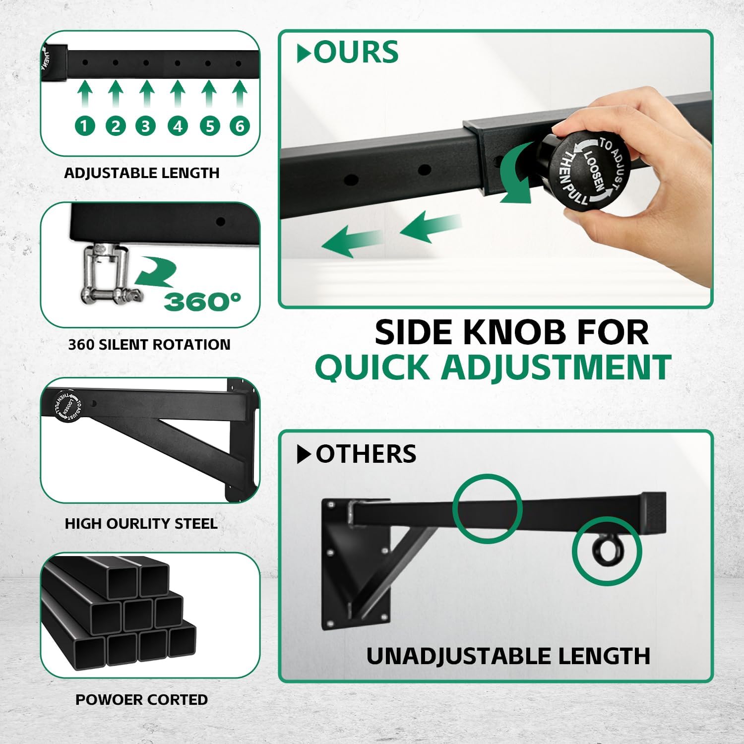 - Suitable for Any Heavy Bag:The 360-degree swivel design allows the heavy bag to rotate smoothly during workouts at home or in the gym.It is suitable for boxing, MMA, and Muay Thai training.
