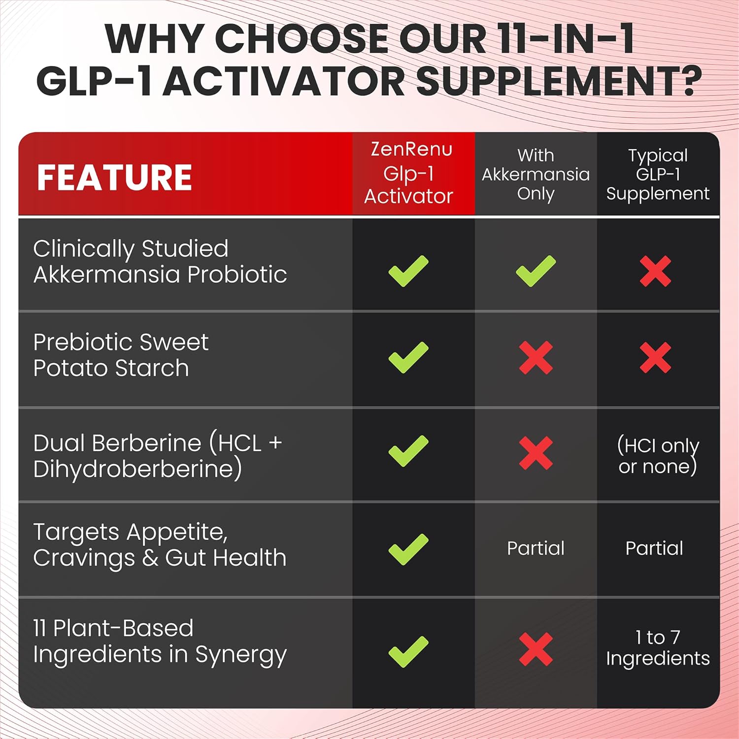 Zenrenu GLP-1 Supplement for Women-Natural Appetite,Craving & Loss Support – Akkermansia Probiotic, Super Berberine & Cinnamon,11-in-1 Gut & Metabolism Support - GLP1 Activate -60 Vegan Caps