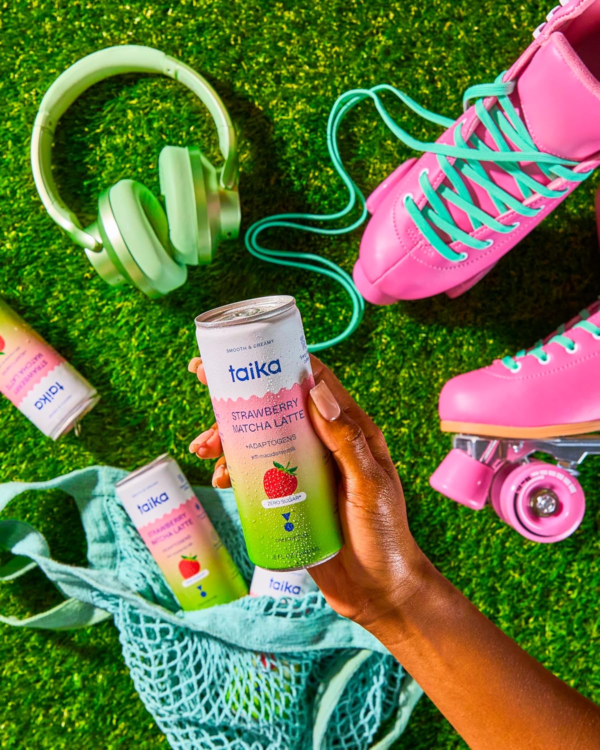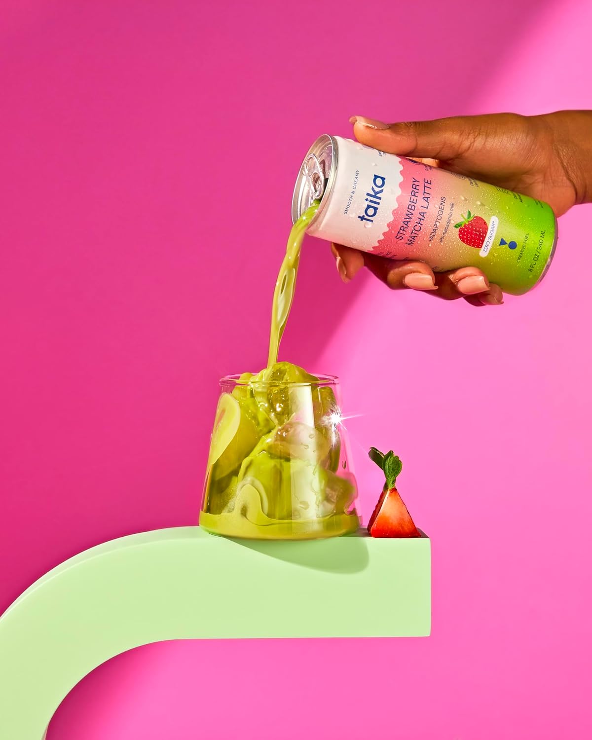 Taika Strawberry Matcha Latte - Ready to Drink Hot & Cold Brew Strawberry Matcha Latte in Cans - Organic Ceremonial Grade Matcha w/Ashwagandha, Lions Mane, & L-Theanine - 8 Fl Oz (Pack of 12) (8 Fl Oz (Pack of 12), Strawberry Matcha Latte)