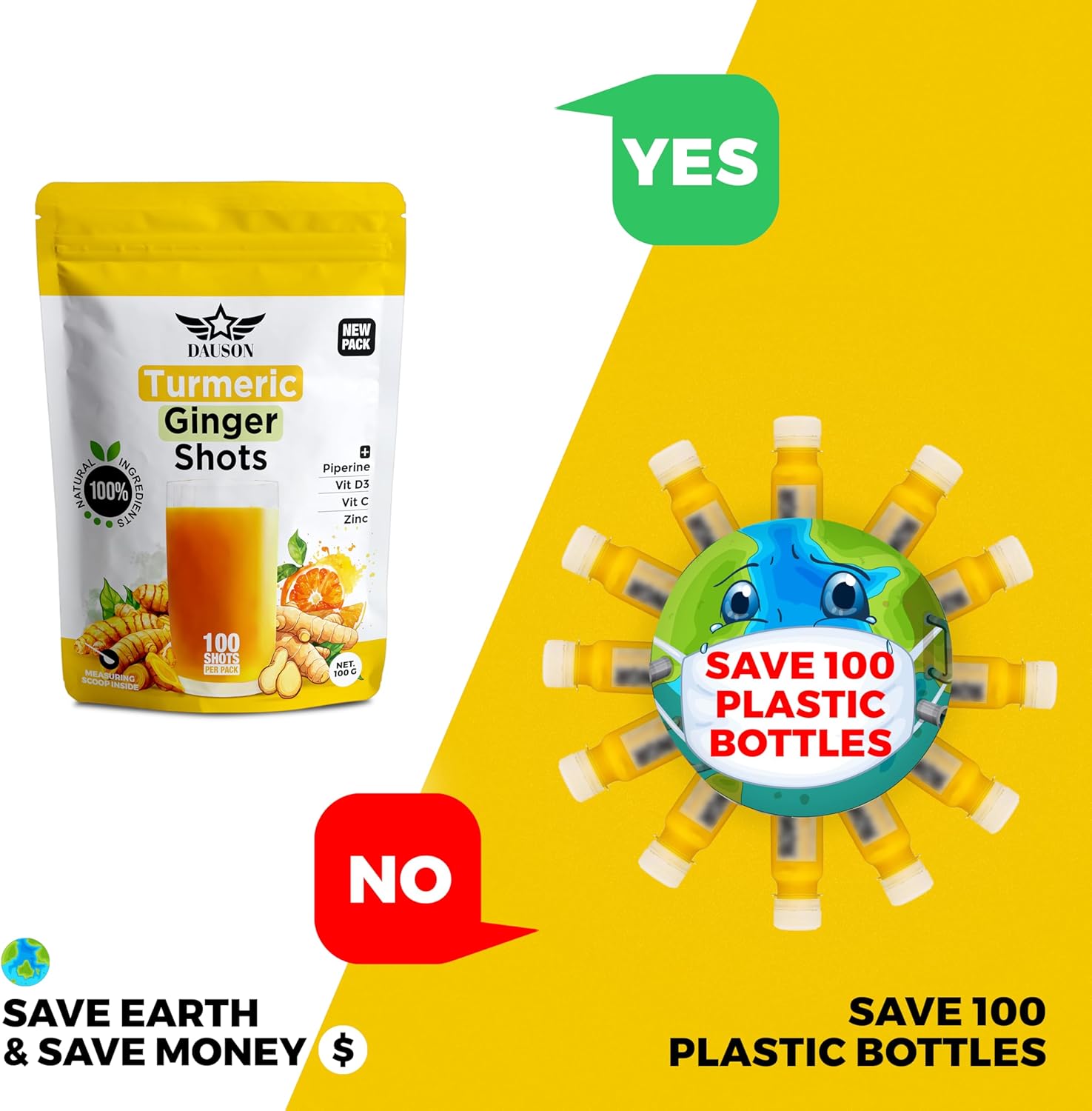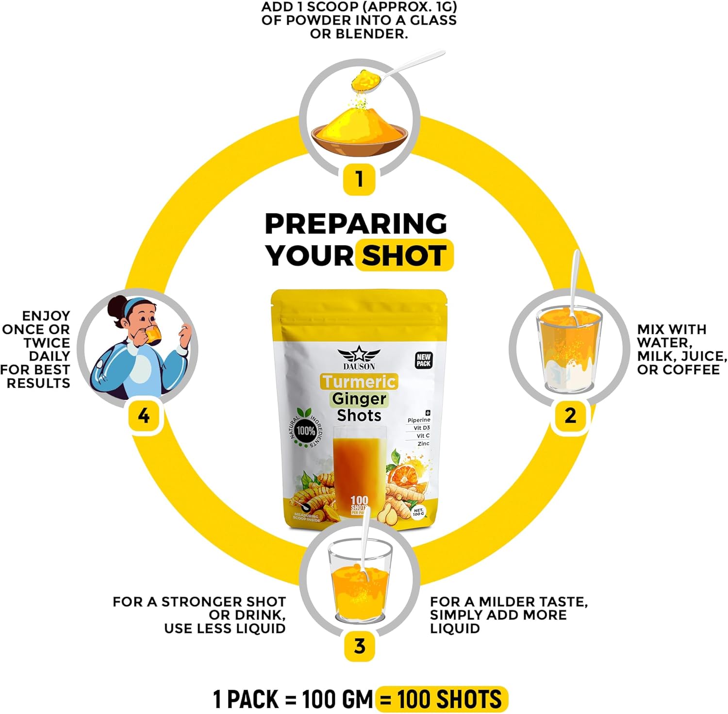 Turmeric Ginger Supplements with Piperine, Vitamin C, Vitamin D3 & Zinc | Turmeric Ginger Shots for Joint, Heart, Brain, Gut & Skin Health | 100 Servings | Ayurvedic | Powder