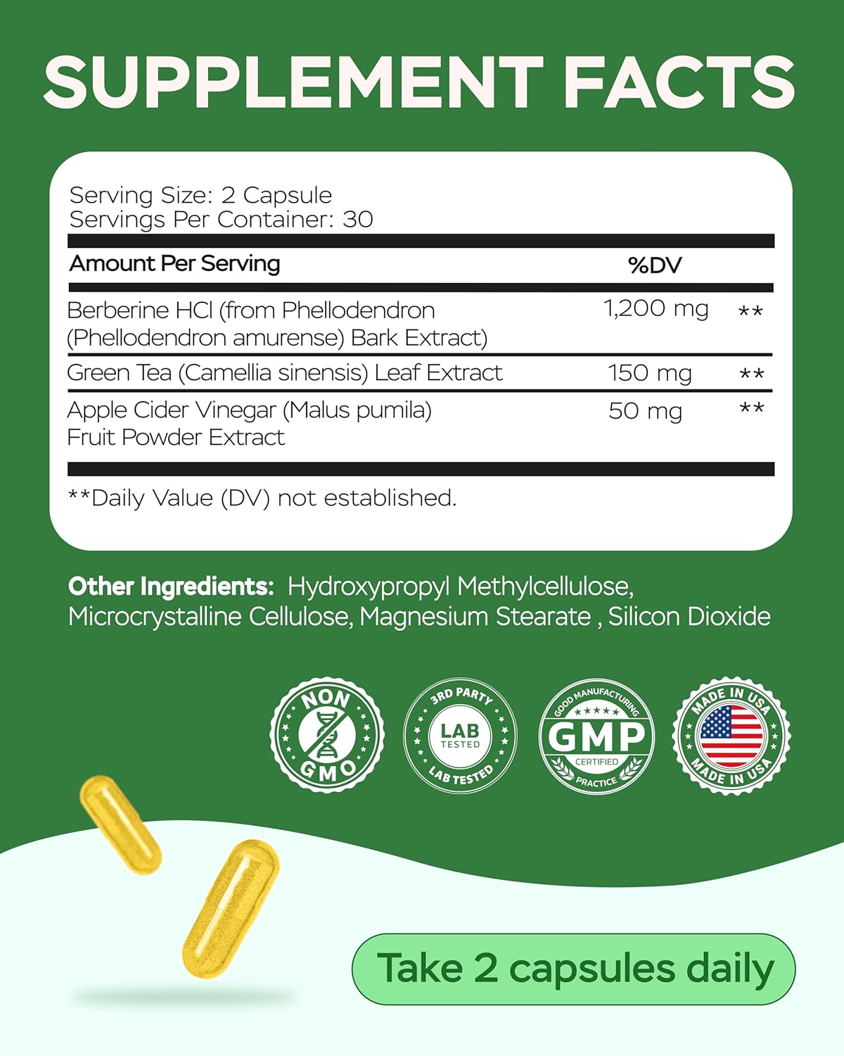 - LEAN BODY SUPPORT & APPETITE CONTROL โ Apple Cider Vinegar works synergistically with Berberine to help curb cravings and promote fat metabolism, while Green Tea Extract provides powerful antioxidants for overall well-being.