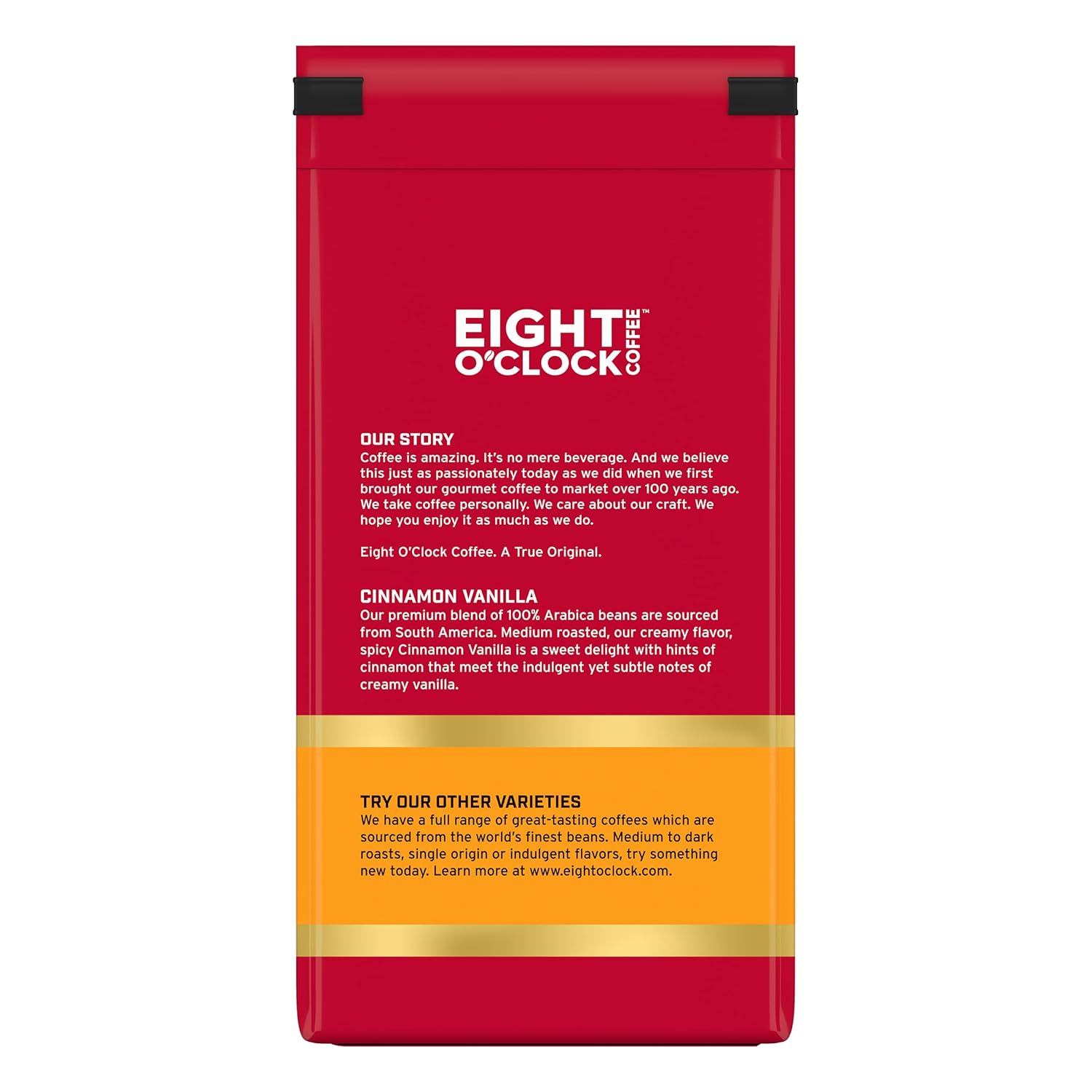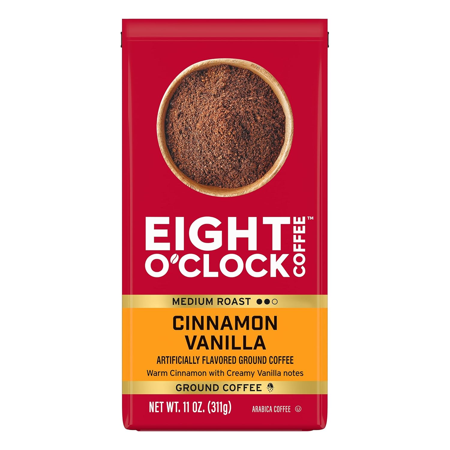 Eight O' Clock Coffee Cinnamon Vanilla, 11 Ounce (Pack of 6), Medium Roast Ground Coffee, 100% Arabica, Creamy, Smooth, Vanilla,