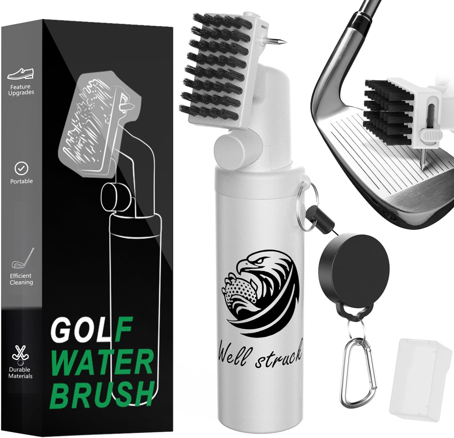 - 【Efficient Cleaning, Better Play】Keeping your club grooves spotless is key to excelling in golf. A clean club free of dirt helps you play with consistency and style. With its innovative water spray design, this brush allows for deeper cleaning than traditional options, boosting your confidence during every competition.