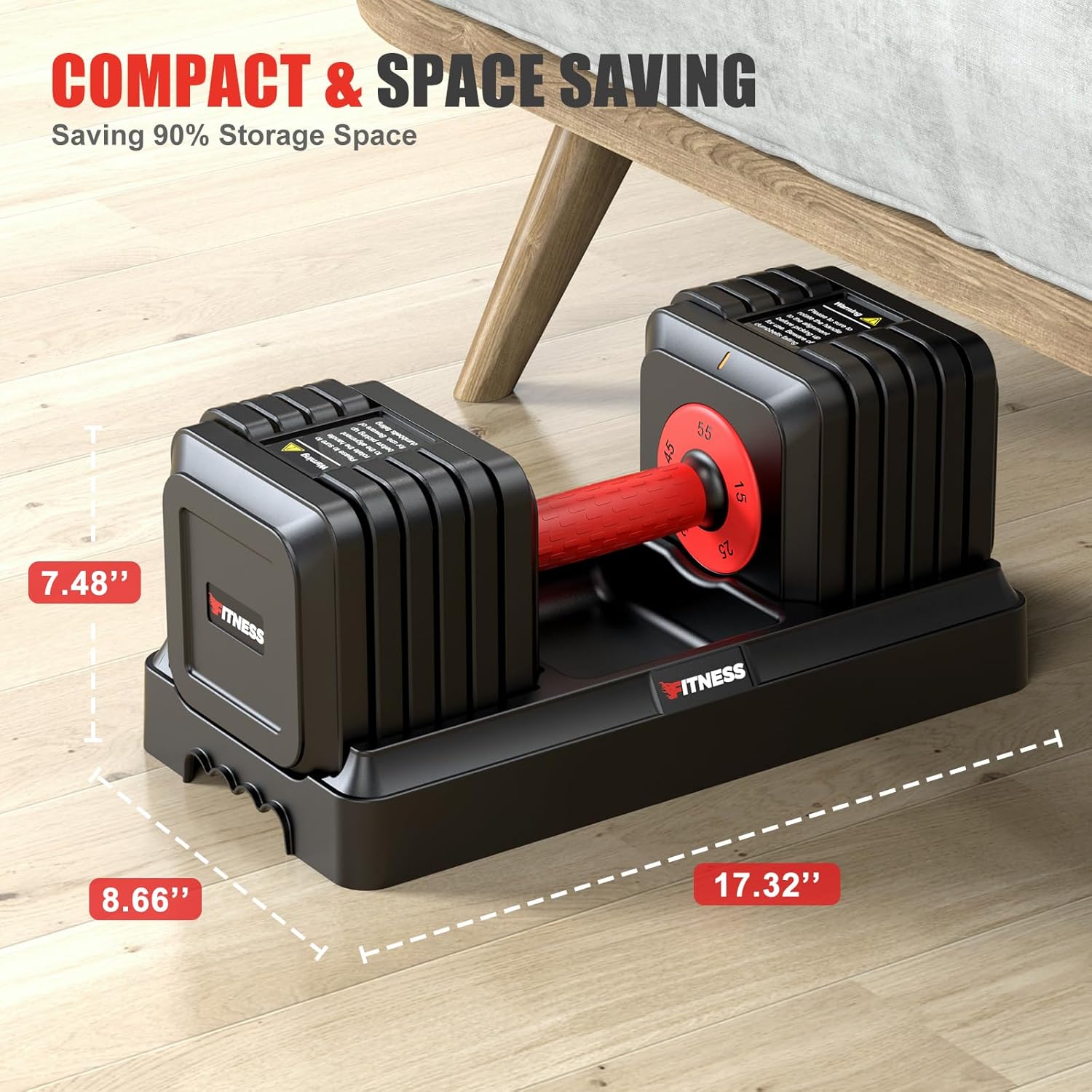 XDDIAS Adjustable Dumbbell Set of 2-25LB/55LB Set-1Sec Adjustable Dumbbell Weights-5 in 1 Free Weights Dumbbells Set with Effortless Tray/No-Slip Handle-Compact Size for Women/Men at Home Gym