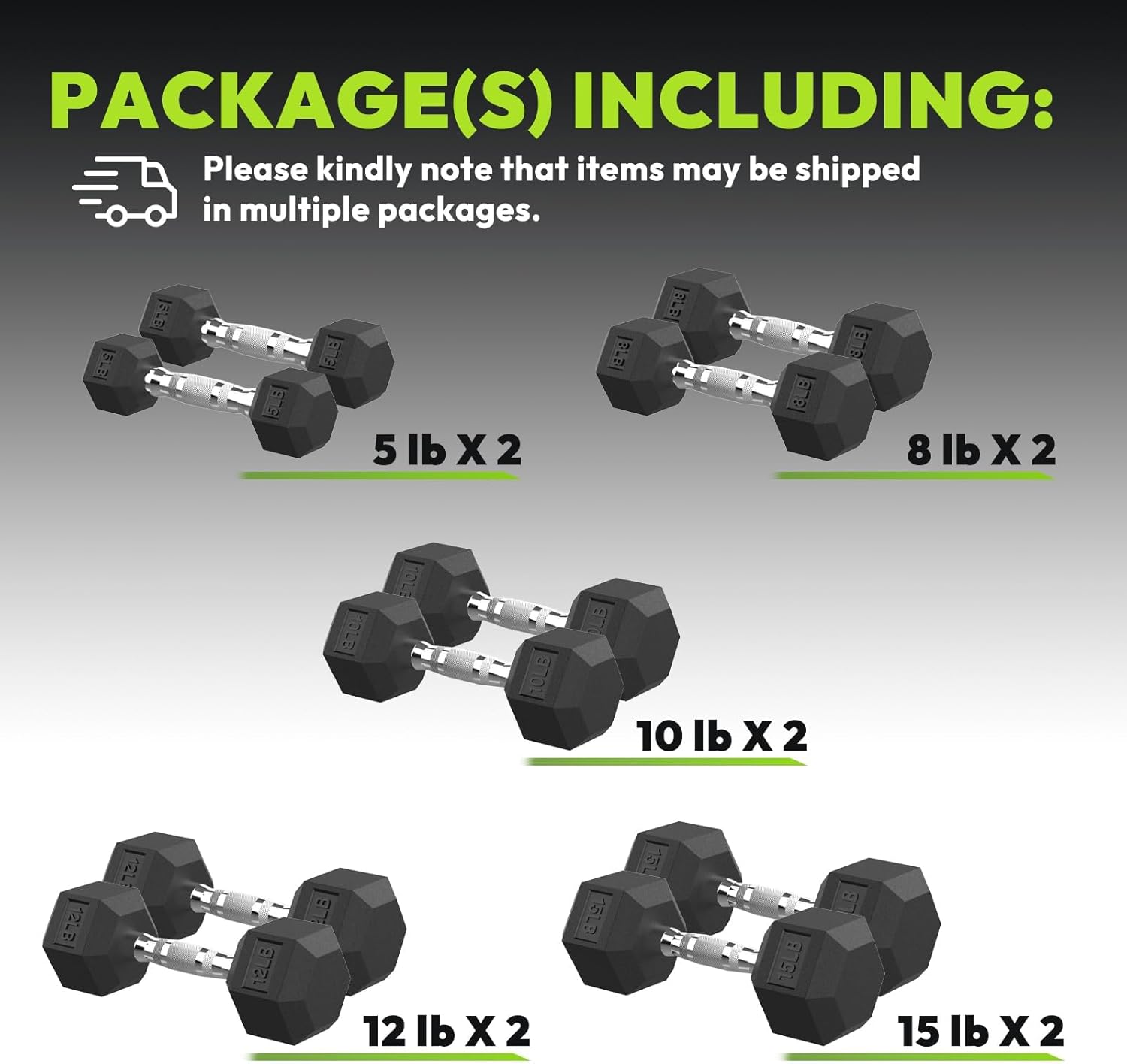 Hex Dumbbell Set, 30-480 lb Set Rubber Encased Exercise & Fitness Dumbbells, Weights Dumbbells Set, Hand Weight for Strength Training