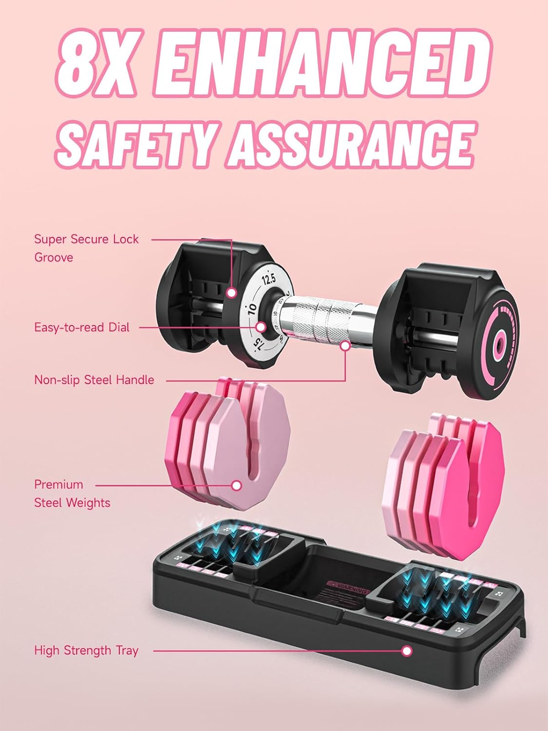 Adjustable Dumbbells Set 12.5LB/22.5LB Pair, 1-Sec Fast Adjustable 5 Weights by Turning Handle, Premium Comfort Non-slip Metal Dumbbells with Tray, Compact Size for Full Body Home Workout
