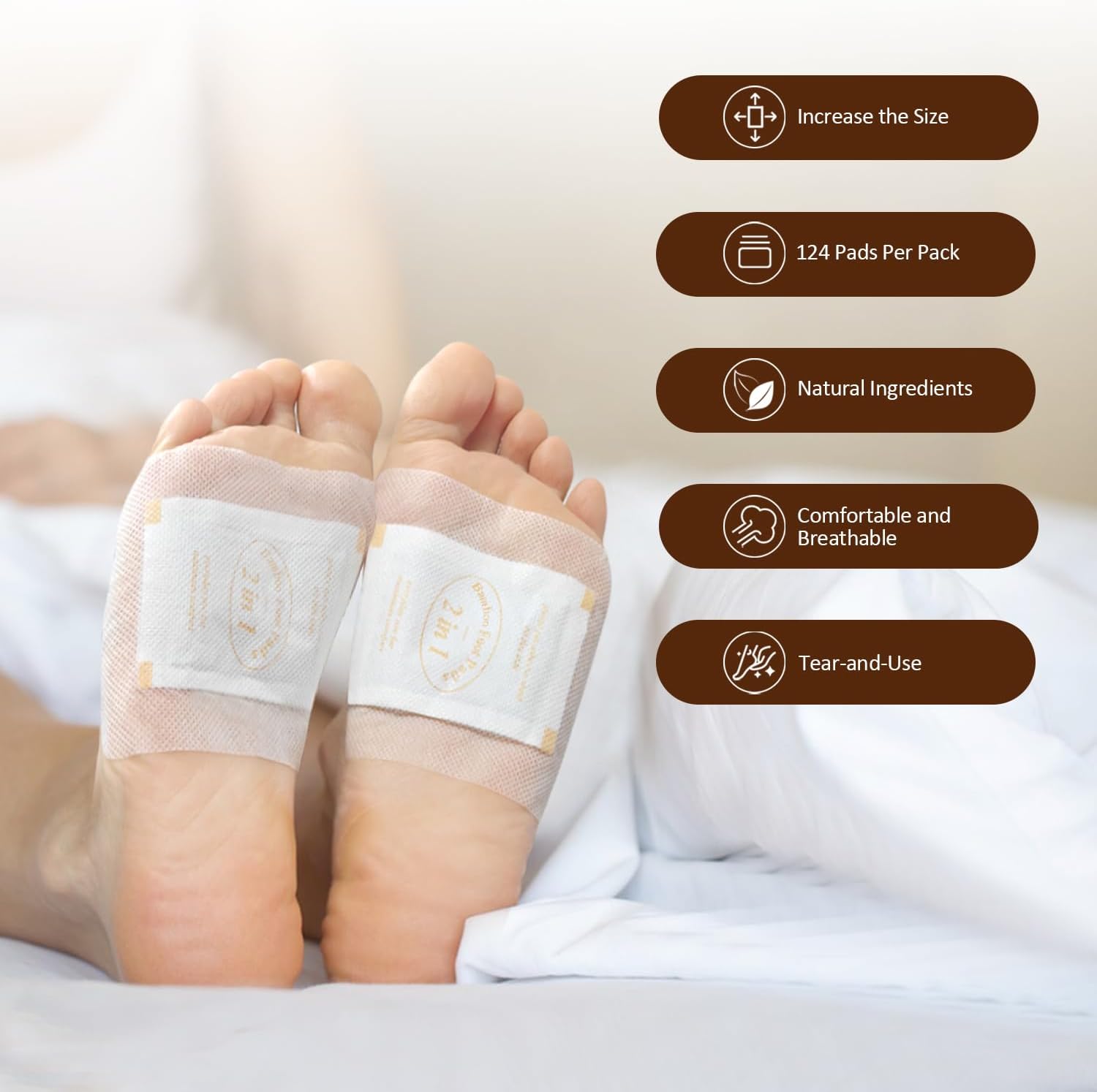 - 3. 2 IN1 Pads: Tear and Use, place the foot pads on the soles of your feet before sleep and keep on for 6-8 hours, remove the pads wake up, and โ thatโs it โ youโve started your journey to a new you