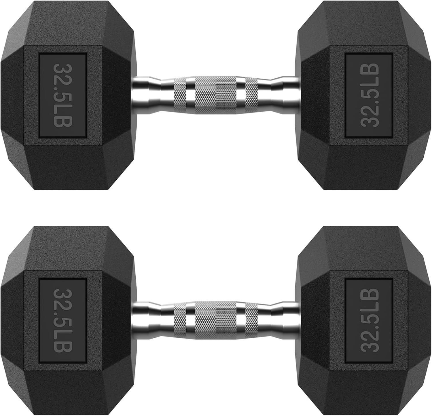 - A pair of 32.5 lb hex dumbbell weight for workout and muscle training.