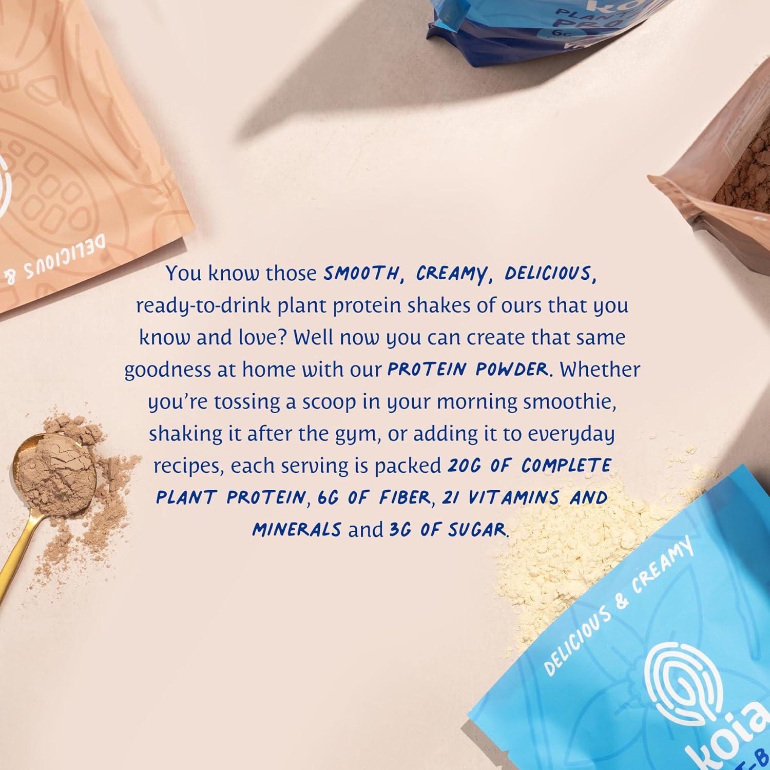 - Vanilla Protein Powder: Enjoy the delicious, creamy goodness of Koia's high-protein, plant-based shakes now in a versatile protein powder that seamlessly fits into your daily routine. A great source of vitamins A, C, D, E & B12, this vegan, non-dairy supplement fuels your body for muscle growth and recovery.