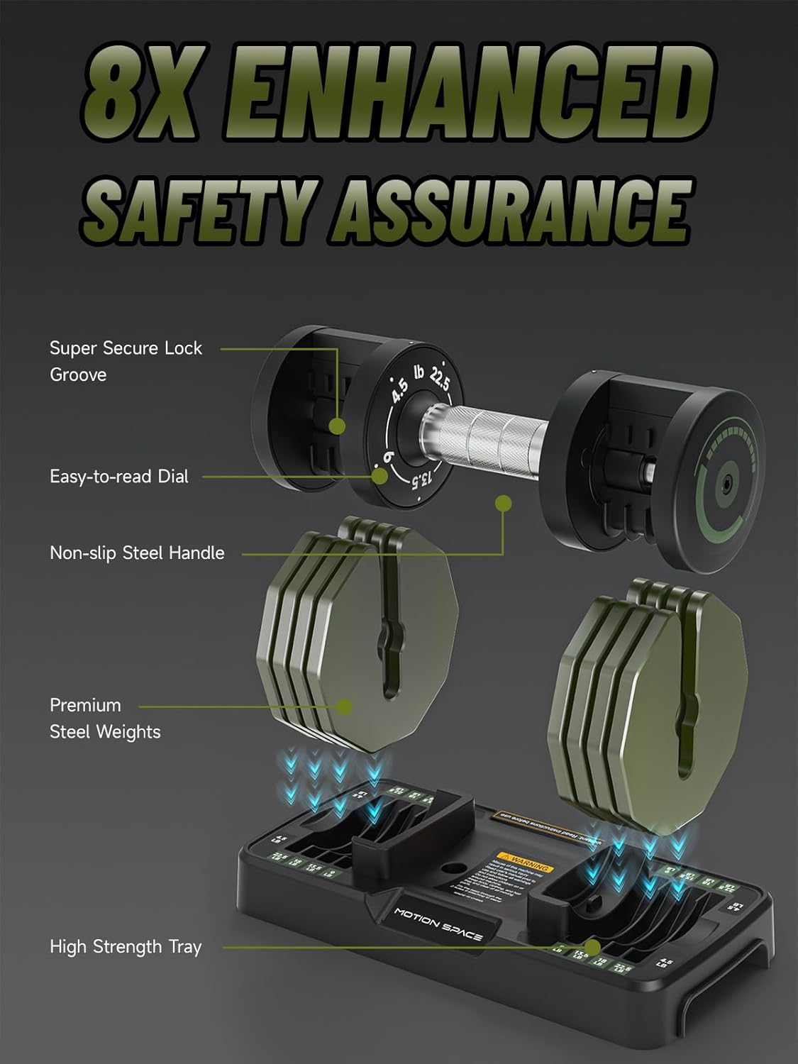- 【SAFETY DESIGN】With its innovative count weight plate design, it easily adjusts the weight by holding the handle and turning the pointer to the desired number. Our latest design includes 8 locking mechanisms, providing stability and ensuring safety during workouts.
