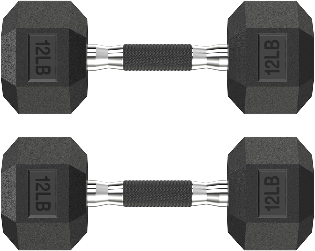- Premium Construction & Durability: Includes a pair of 12 lb dumbbells made from solid cast iron and encased in high-quality virgin rubber, these dumbbells resist cracking, fading, and protect both floors and equipment.